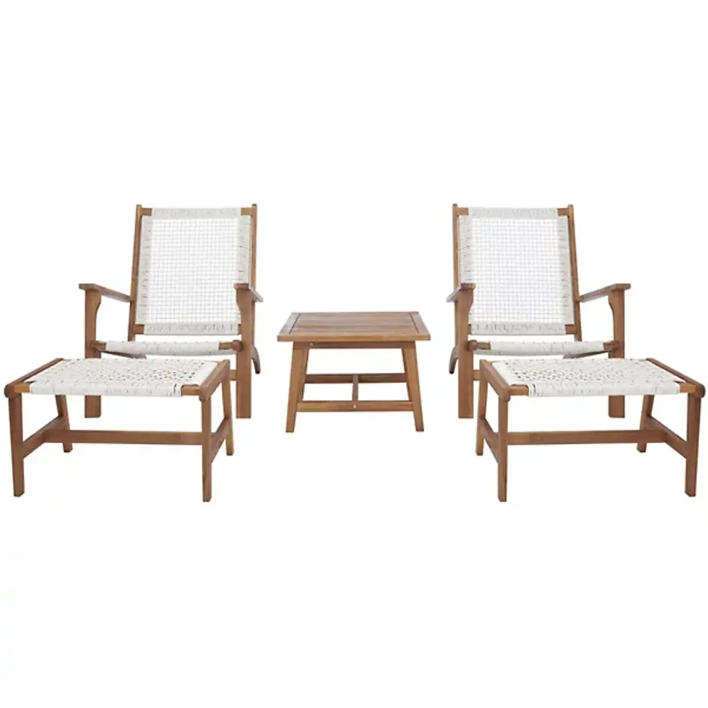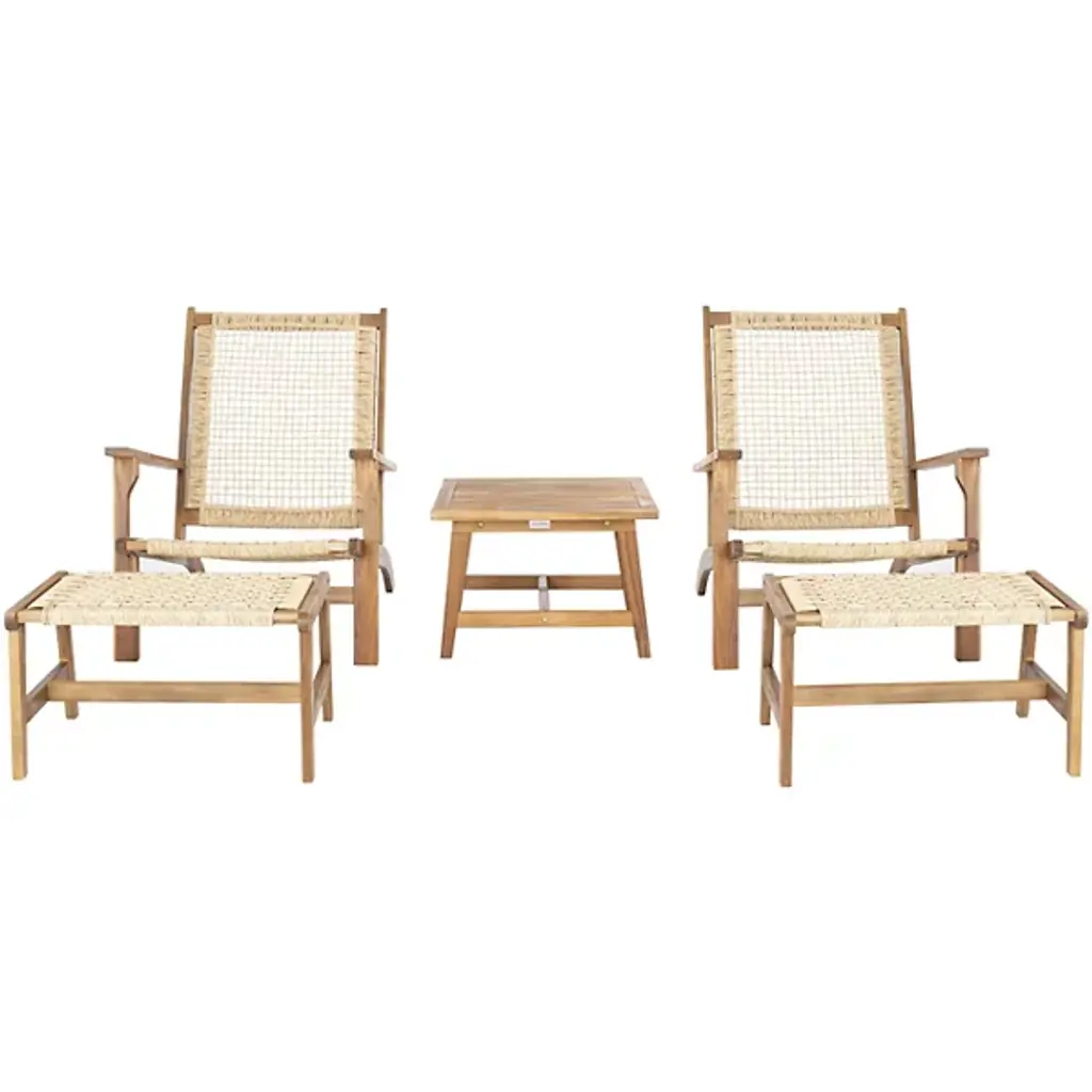 Transform your backyard into a tropical paradise with the coastal-inspired Cadell Outdoor Lounge Chair Set from Alder & Ore. This chic set features two low-profile acacia wood chairs and matching stools, offering luxurious comfort for lounging under the sun. The included end table provides the perfect spot for aperitifs, appetizers, or your favorite summer drinks. Accentuated by complementary woven rattan detailing, this product blends natural textures with effortless style, making it a must-have addition to any outdoor living space.