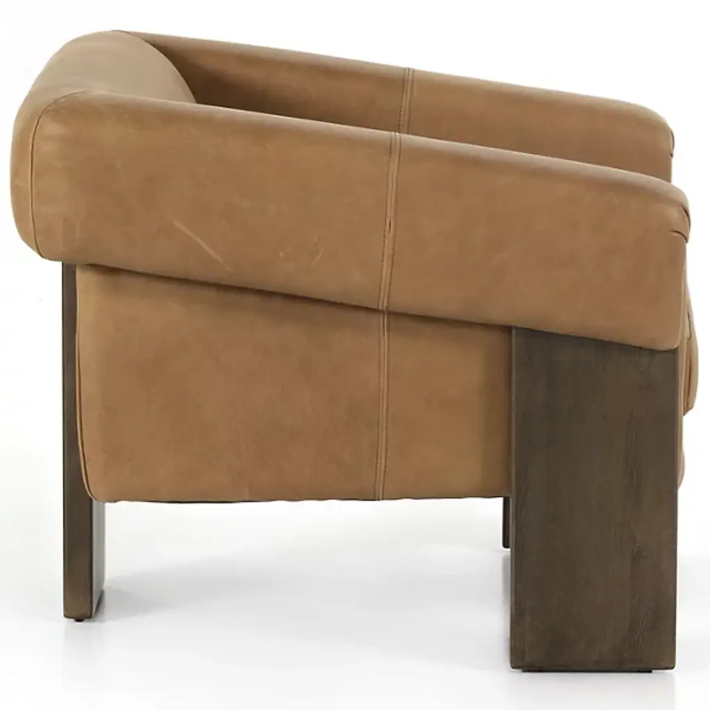 Give your home a contemporary look with the Cairo Chair by Four Hands. Your chair features top-grain leather for a comfortable seating experience. Leather material elegantly folds around this chair’s framework of solid beech. The legs of your chair bolster its contoured arms in addition to providing foundational support. A statement piece for your living room, the eye is drawn to the U-shaped silhouette formed by Cairo’s profile.