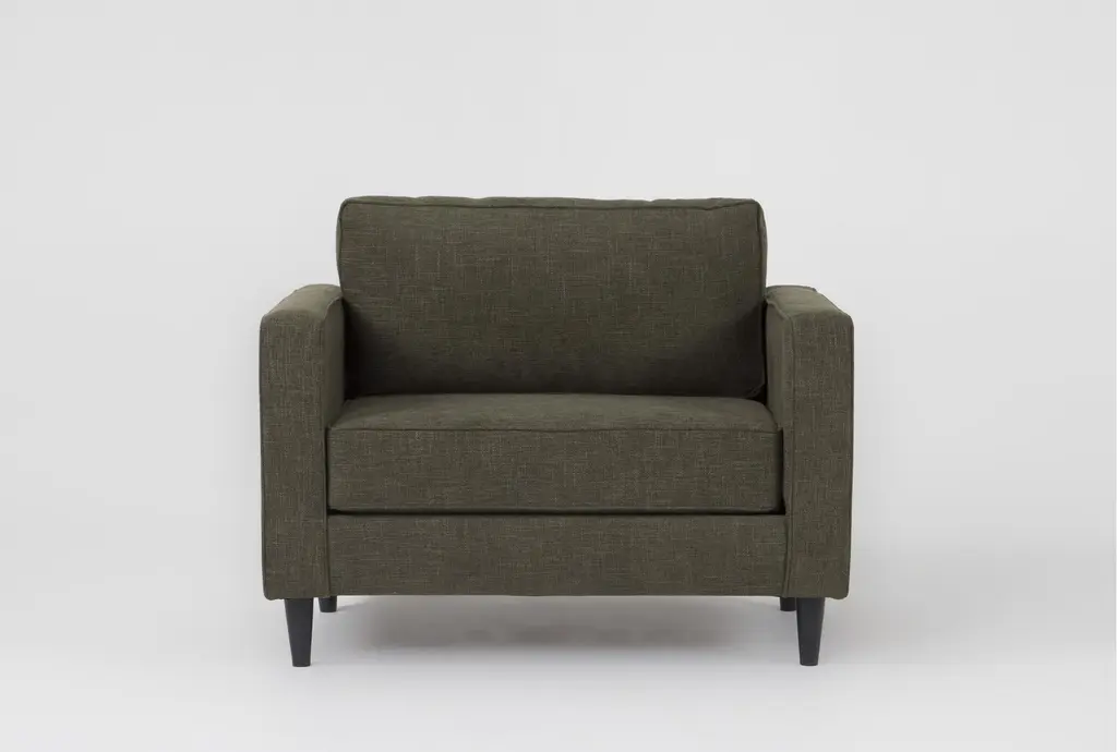 Fans of ease and simplicity will be impressed with the sleek, streamlined nature of our Calais chair, which is designed and made exclusively by Living Spaces. Track arms and a tailored frame create a sense of sophistication, while tapered legs point the design in a mid-century modern direction. Loose, reversible cushions ensure even wear and longevity. Available in multiple colors, you can pick the hue that suits you and your living room best. This design is the perfect bedroom chair, reading chair, club chair or accent chair for living room.