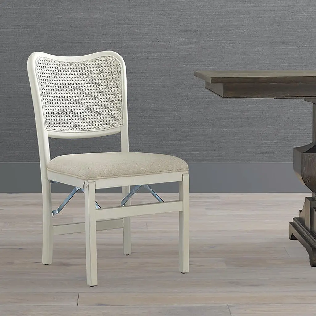 Our full-sized Cane Folding Chairs were painstakingly designed to create elegant seating in an instant. With their bistro-inspired bentwood frame, natural woven cane back and high-density foam cushions with performance fabric, these chairs do not even appear to fold when in use. Solid wood frame with a Sable, Fog Gray or Antique White finish Natural woven cane back Fine furniture look and feel 25% larger than similar folding chairs High-quality metal hinges designed for lasting durability High-density foam cushion covered in Beige Linen Performance Fabric Performance polyester fabric is treated for stain resistance and worry-free entertaining Nonmarring plastic foot glides Imported A Frontgate exclusive. At Frontgate, our primary focus is quality. We guarantee that every product we sell will stand up to the supreme test – our customers' satisfaction. To learn more about our policies, visit our Shipping & Processing, Returns & Exchanges and Warranty & Price Guarantee pages.