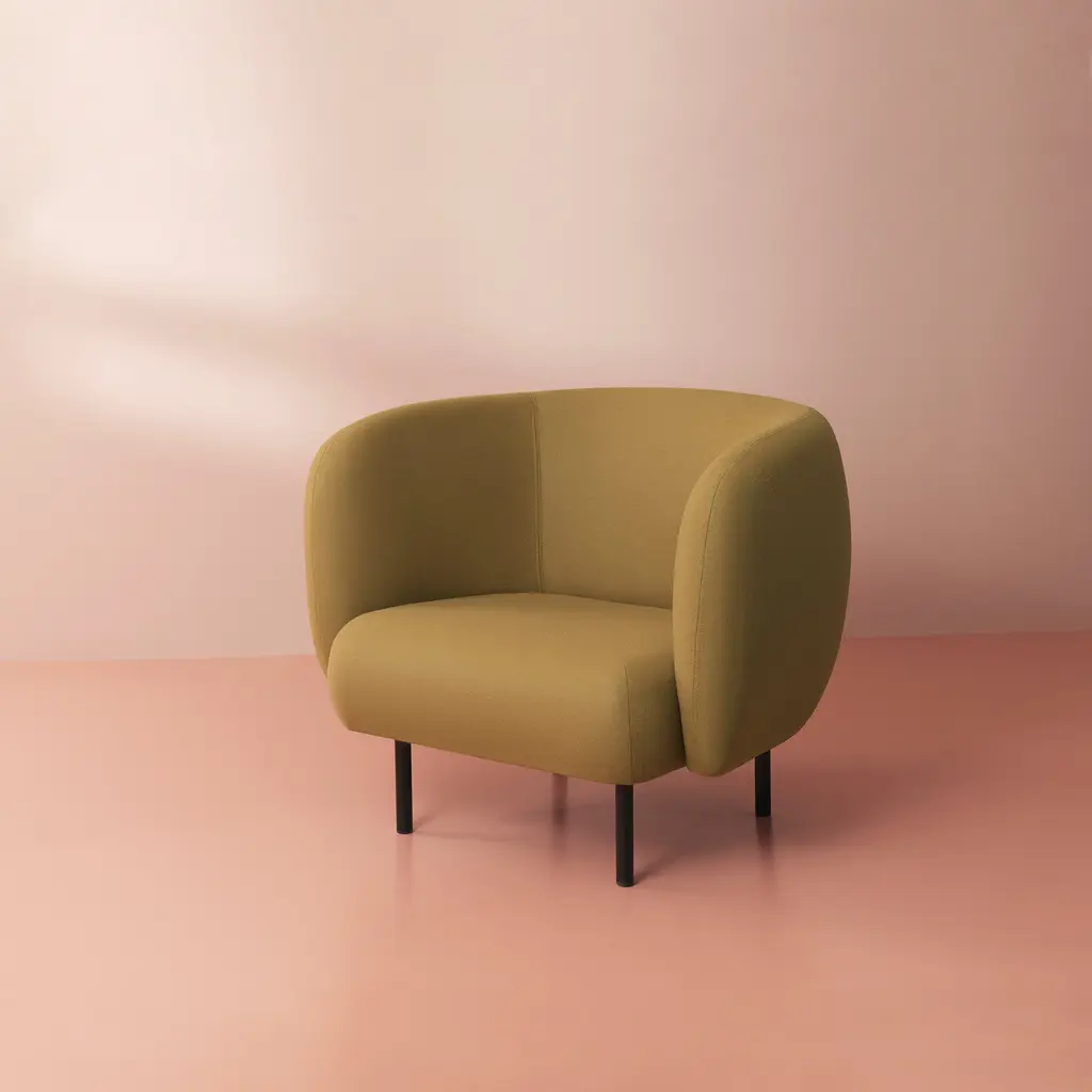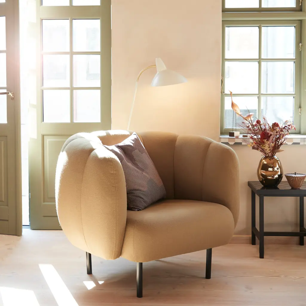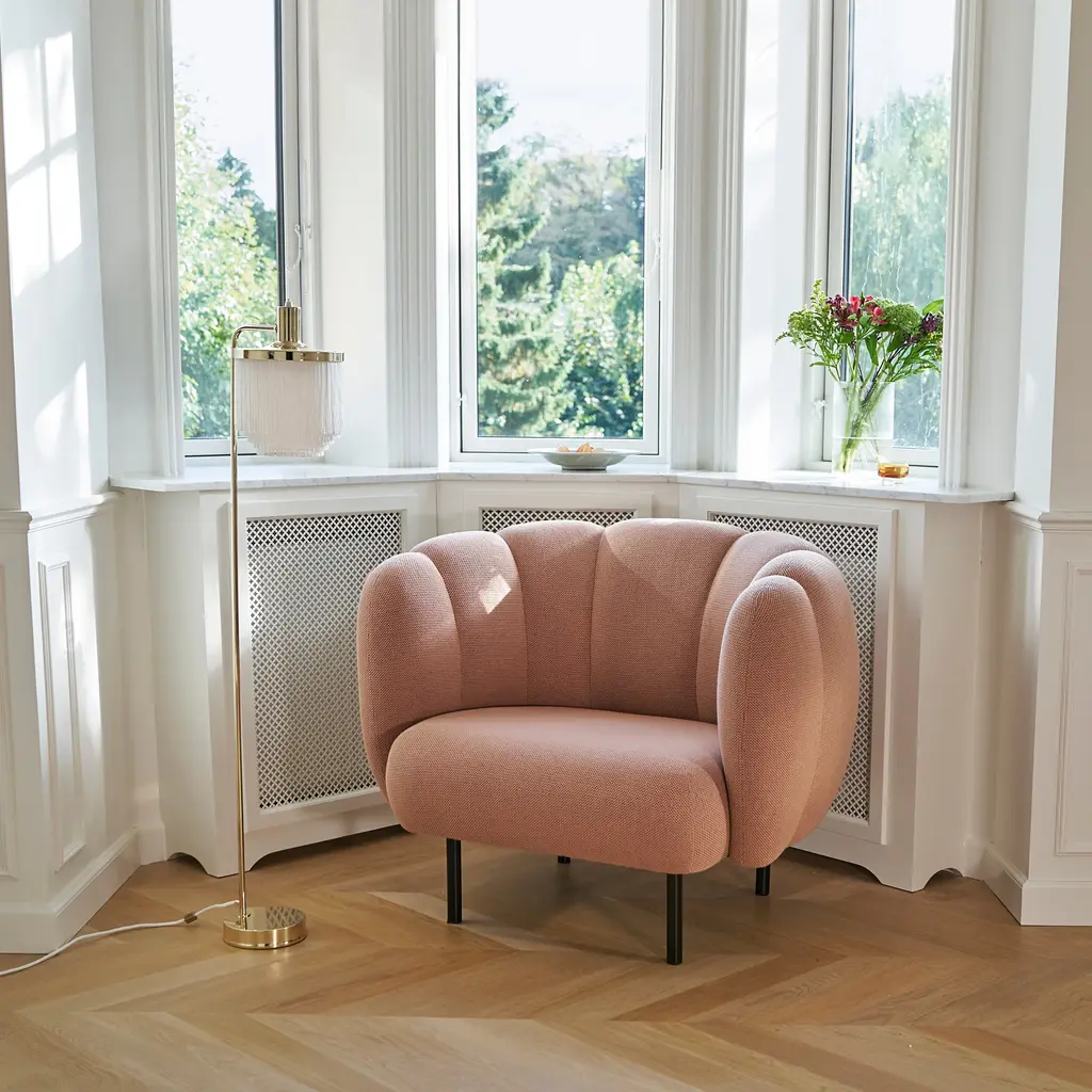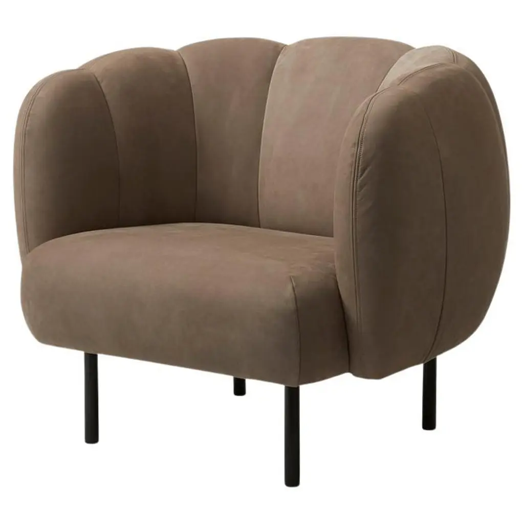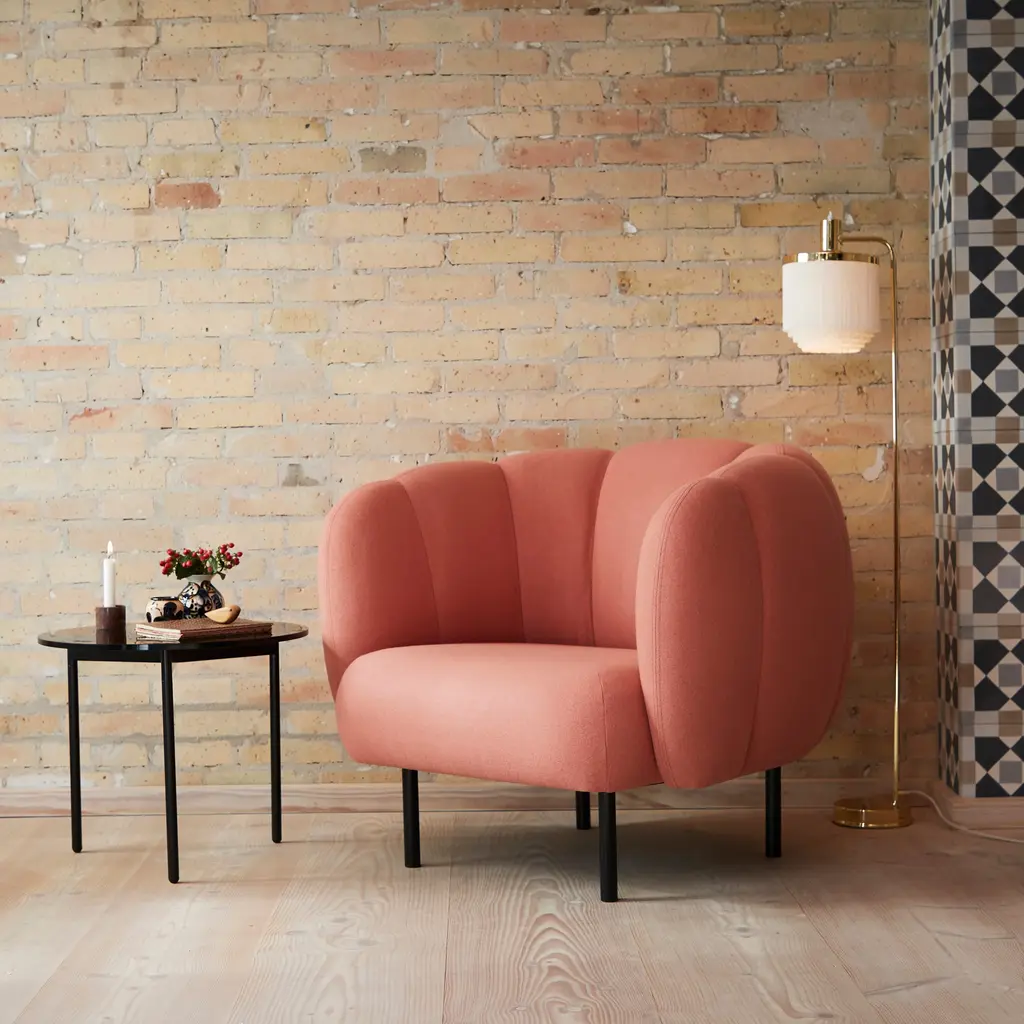 The Cape Lounge Chair, designed by Charlotte Høncke, takes inspiration from the soft, layered look of puffed sleeves found in haute couture fashion. Its gently curved silhouette and luxurious upholstery create a warm and inviting presence, making it an ideal focal point for cozy living spaces. The chair is available with or without visible stitching.