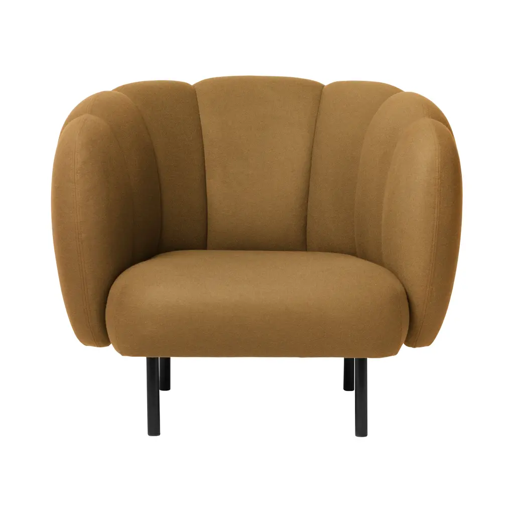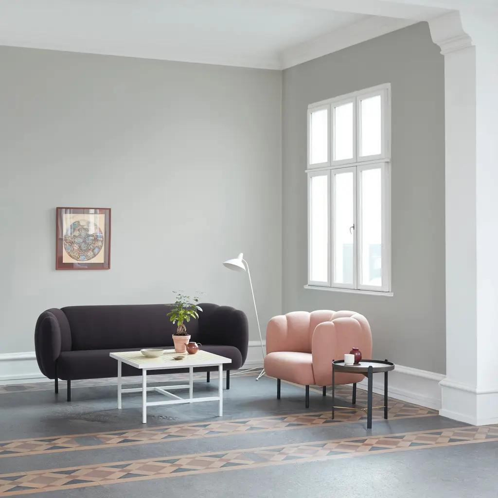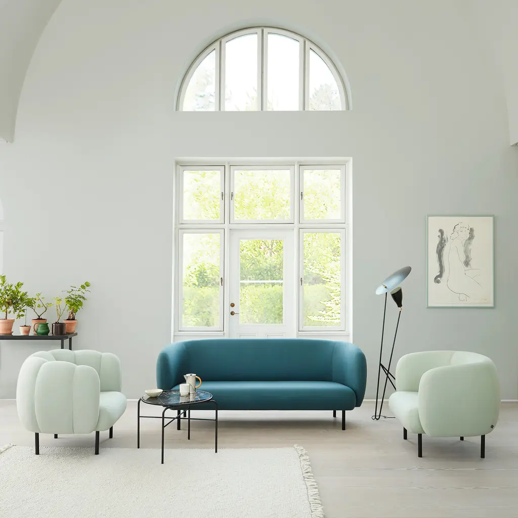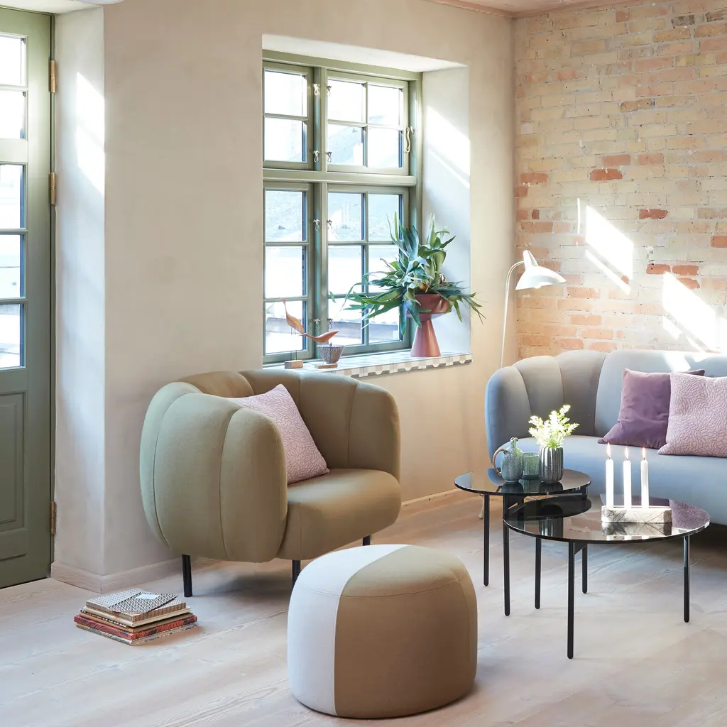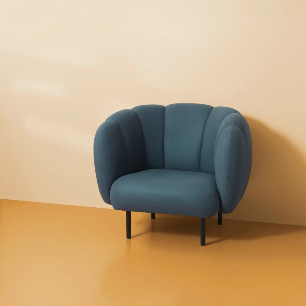 The Cape Lounge Chair, designed by Charlotte Høncke, takes inspiration from the soft, layered look of puffed sleeves found in haute couture fashion. Its gently curved silhouette and luxurious upholstery create a warm and inviting presence, making it an ideal focal point for cozy living spaces. The chair is available with or without visible stitching.