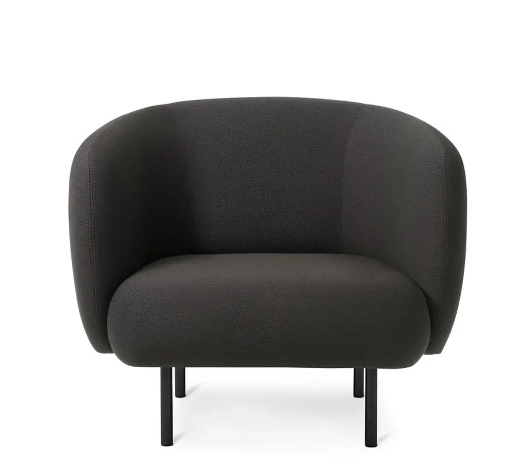 Cape lounge chair Sprinkles Mocca by Warm NordicDimensions: D 90 x W 82 x H 80 cmMaterial: Textile upholstery, Wooden frame, Powder coated black steel legsWeight: 34.5 kgAlso available in different colours and finishes.An elegant armchair with an organic design inspired by the puffed sleeves and layered designs of haute couture. Its soft lines and chic details make the Cape armchair a real eye-catcher. The chair is lovely to sit in, maybe even more so when accompanied by the sofa from the same range. Both items of furniture are available with or without visible stitching. In the Cape armchair's simple, yet rich design there lurks a detailed aesthetic and an implicit sensuousness. The Cape range is covered with exclusive furnishing fabrics, including 'Hero', whose soft, almost felt-like surface complements the armchairs organic shape, and which is designed by Patricia Urquiola.Warm Nordic is an ambitious design brand anchored in Nordic design history and with a timeless, aesthetic style that inspires you to appreciate the little things in life. The company is the result of several years’ intense work on developing a new design brand with design history, quality and personality at its core. Warm Nordic boasts a colourful and charming universe of furniture, lamps and accessories full of personality. Our designs encapsulate the Nordic spirit, which in its essence is timeless, inclusive and warm.
