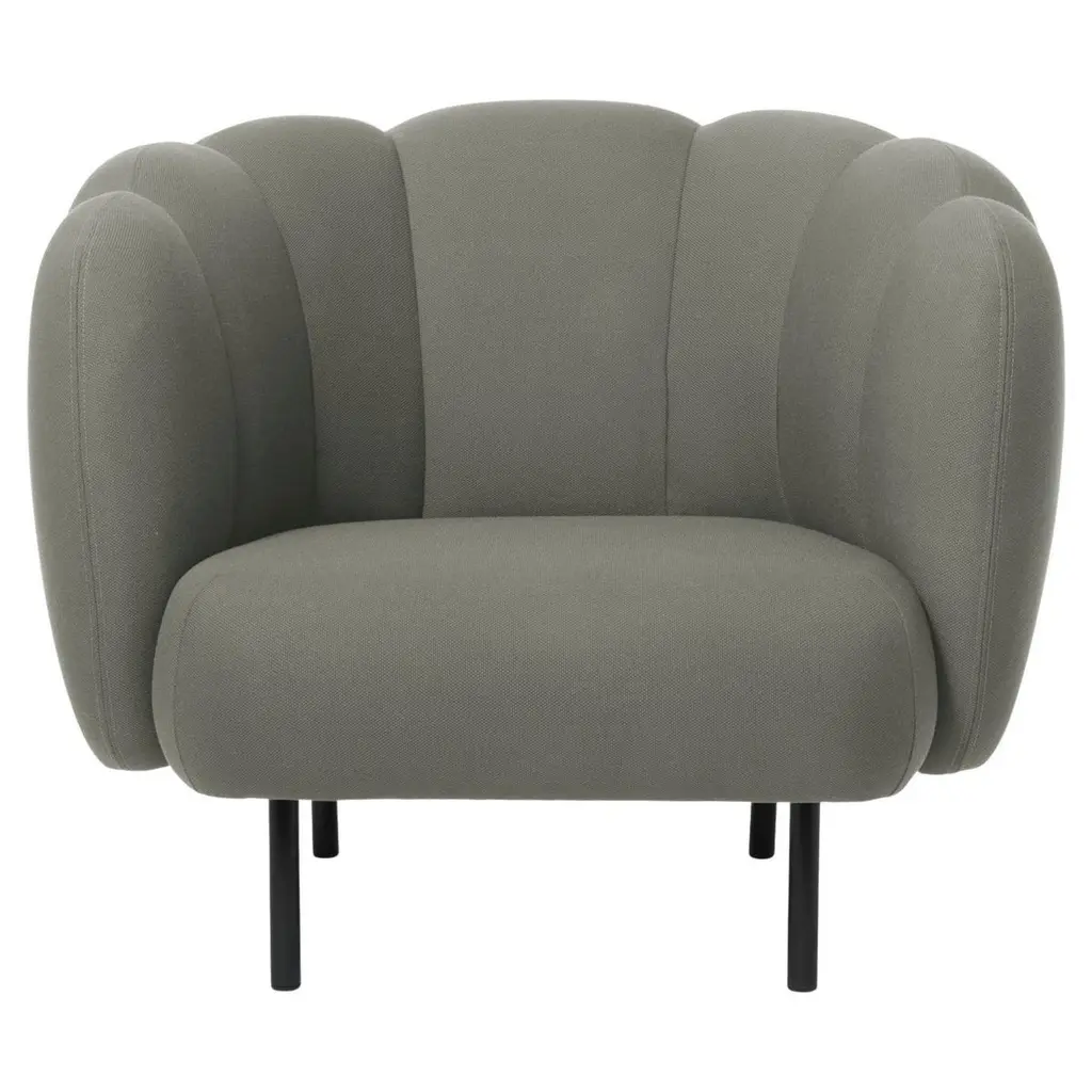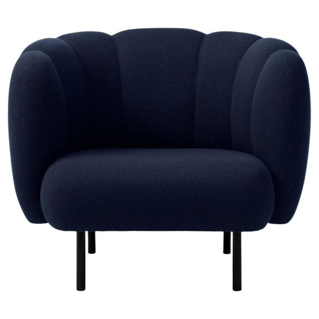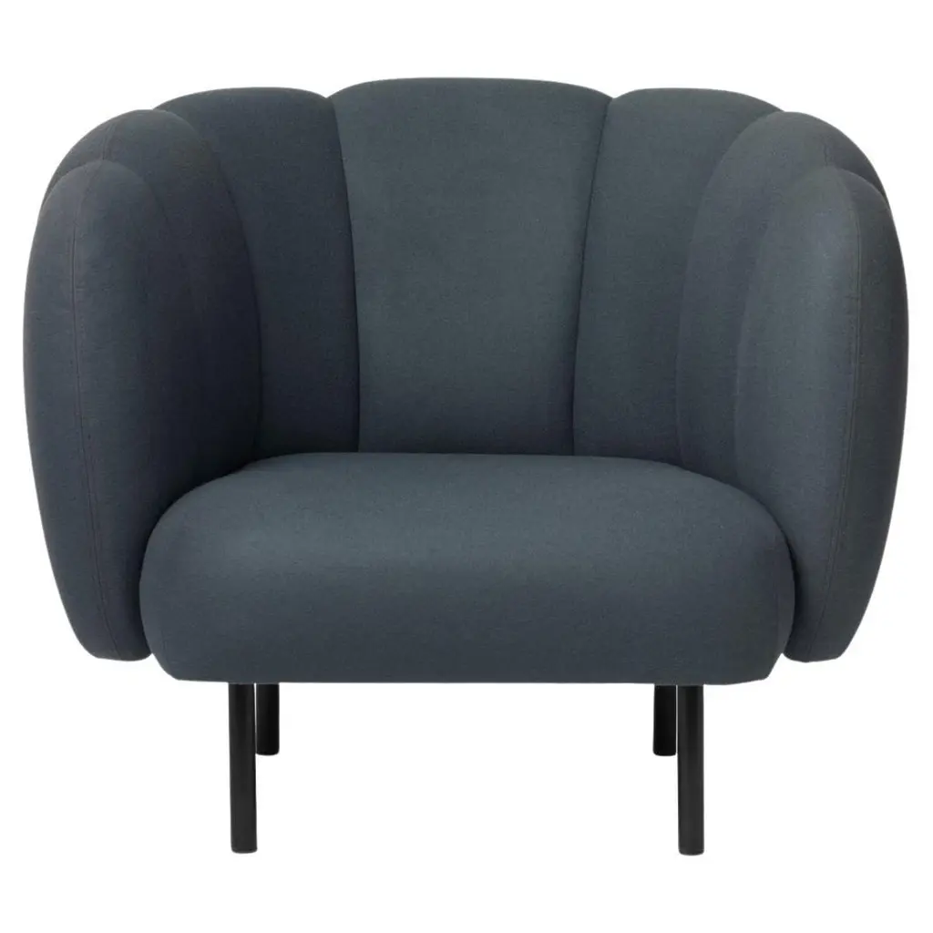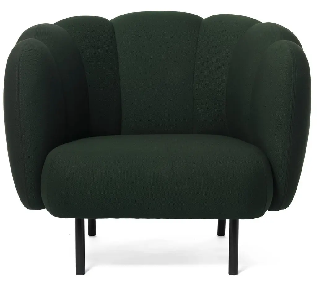 Cape lounge chair with stitches forest green by Warm NordicDimensions: D95 x W84 x H 80 cmMaterial: textile upholstery, wooden frame, powder coated black steel legsWeight: 36.5 kgAlso available in different colours and finishes.An elegant armchair with an organic design inspired by the puffed sleeves and layered designs of haute couture. Its soft lines and chic details make the Cape armchair a real eye-catcher. The chair is lovely to sit in, maybe even more so when accompanied by the sofa from the same range. Both items of furniture are available with or without visible stitching. In the Cape armchair's simple, yet rich design there lurks a detailed aesthetic and an implicit sensuousness. The Cape range is covered with exclusive furnishing fabrics, including 'Hero', whose soft, almost felt-like surface complements the armchairs organic shape, and which is designed by Patricia Urquiola.Warm Nordic is an ambitious design brand anchored in Nordic design history and with a timeless, aesthetic style that inspires you to appreciate the little things in life. The company is the result of several years’ intense work on developing a new design brand with design history, quality and personality at its core. Warm Nordic boasts a colourful and charming universe of furniture, lamps and accessories full of personality. Our designs encapsulate the Nordic spirit, which in its essence is timeless, inclusive and warm.