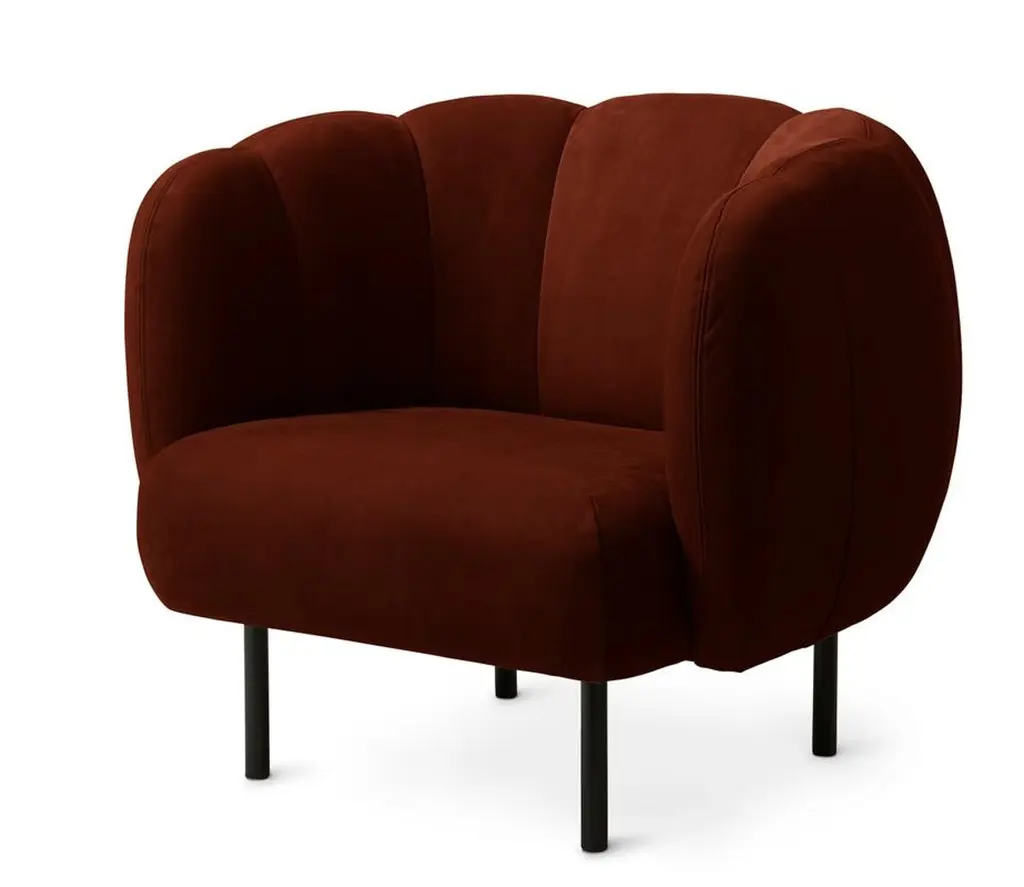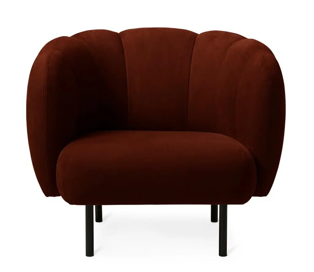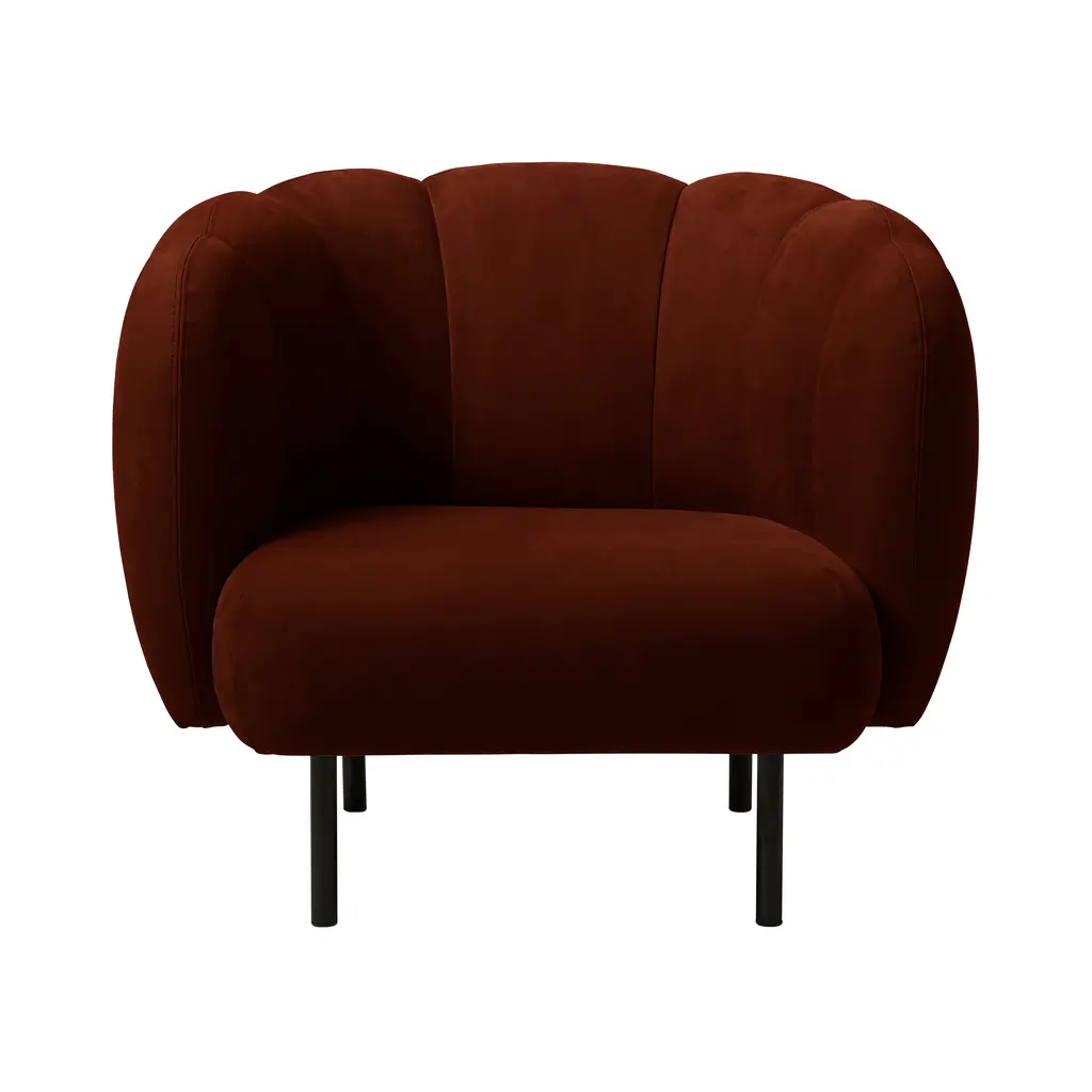 Cape Lounge chair with stitches nabuk terra by Warm NordicDimensions: D95 x W84 x H 80 cmMaterial: Textile or nubuck leather upholstery Wooden frame, Powder coated black steel legsWeight: 36.5 kgAlso available in different colours and finishes. An elegant armchair with an organic design inspired by the puffed sleeves and layered designs of haute couture. Its soft lines and chic details make the Cape armchair a real eye-catcher. The chair is lovely to sit in, maybe even more so when accompanied by the sofa from the same range. Both items of furniture are available with or without visible stitching. In the Cape armchair's simple, yet rich design there lurks a detailed aesthetic and an implicit sensuousness. The Cape range is covered with exclusive furnishing fabrics, including 'Hero', whose soft, almost felt-like surface complements the armchairs organic shape, and which is designed by Patricia Urquiola.Warm Nordic is an ambitious design brand anchored in Nordic design history and with a timeless, aesthetic style that inspires you to appreciate the little things in life. The company is the result of several years’ intense work on developing a new design brand with design history, quality and personality at its core. Warm Nordic boasts a colourful and charming universe of furniture, lamps and accessories full of personality. Our designs encapsulate the Nordic spirit, which in its essence is timeless, inclusive and warm.