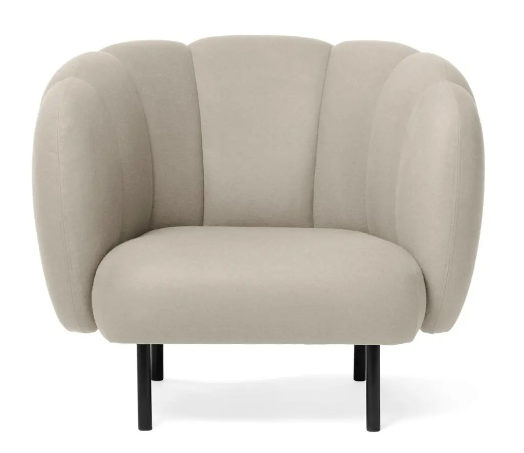 Cape Lounge Chair with stitches pearl grey by Warm NordicDimensions: D 95 x W 84 x H 80 cmMaterial: Textile upholstery, wooden frame, powder coated black steel legsWeight: 36.5 kgAlso available in different colours and finishes.An elegant armchair with an organic design inspired by the puffed sleeves and layered designs of haute couture. Its soft lines and chic details make the Cape armchair a real eye-catcher. The chair is lovely to sit in, maybe even more so when accompanied by the sofa from the same range. Both items of furniture are available with or without visible stitching. In the Cape armchair's simple, yet rich design there lurks a detailed aesthetic and an implicit sensuousness. The Cape range is covered with exclusive furnishing fabrics, including 'Hero', whose soft, almost felt-like surface complements the armchairs organic shape, and which is designed by Patricia Urquiola.Warm Nordic is an ambitious design brand anchored in Nordic design history and with a timeless, aesthetic style that inspires you to appreciate the little things in life. The company is the result of several years’ intense work on developing a new design brand with design history, quality and personality at its core. Warm Nordic boasts a colourful and charming universe of furniture, lamps and accessories full of personality. Our designs encapsulate the Nordic spirit, which in its essence is timeless, inclusive and warm.
