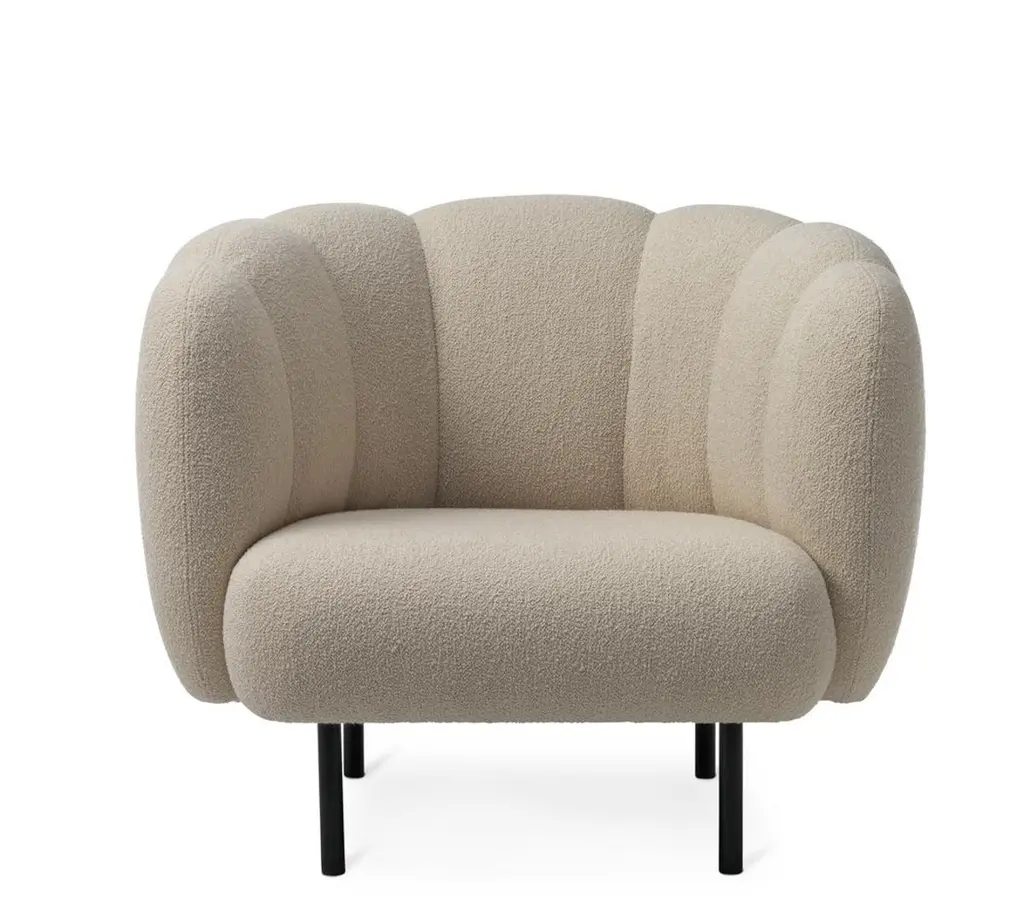 Cape lounge chair with stitches sand by Warm NordicDimensions: D95 x W84 x H 80 cmMaterial: textile upholstery, wooden frame, powder coated black steel legsWeight: 36.5 kgAlso available in different colours and finishes. An elegant armchair with an organic design inspired by the puffed sleeves and layered designs of haute couture. Its soft lines and chic details make the Cape armchair a real eye-catcher. The chair is lovely to sit in, maybe even more so when accompanied by the sofa from the same range. Both items of furniture are available with or without visible stitching. In the Cape armchair's simple, yet rich design there lurks a detailed aesthetic and an implicit sensuousness. The Cape range is covered with exclusive furnishing fabrics, including 'Hero', whose soft, almost felt-like surface complements the armchairs organic shape, and which is designed by Patricia Urquiola.Warm Nordic is an ambitious design brand anchored in Nordic design history and with a timeless, aesthetic style that inspires you to appreciate the little things in life. The company is the result of several years’ intense work on developing a new design brand with design history, quality and personality at its core. Warm Nordic boasts a colourful and charming universe of furniture, lamps and accessories full of personality. Our designs encapsulate the Nordic spirit, which in its essence is timeless, inclusive and warm.