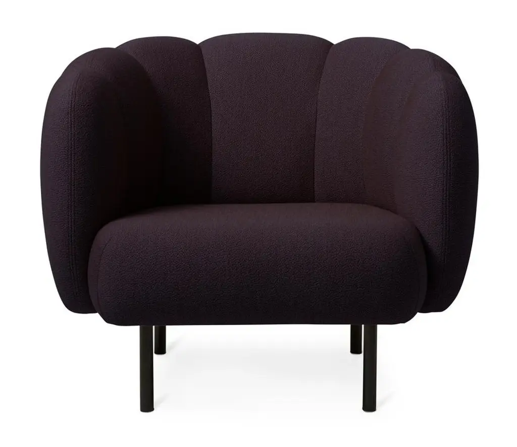 Cape Lounge chair with stitches sprinkles Eggplant by Warm NordicDimensions: D95 x W84 x H 80 cmMaterial: Textile or nubuck leather upholstery, Wooden frame, Powder coated black steel legsWeight: 36.5 kgAlso available in different colors and finishes. An elegant armchair with an organic design inspired by the puffed sleeves and layered designs of haute couture. Its soft lines and chic details make the Cape armchair a real eye-catcher. The chair is lovely to sit in, maybe even more so when accompanied by the sofa from the same range. Both items of furniture are available with or without visible stitching. In the Cape armchair's simple, yet rich design there lurks a detailed aesthetic and an implicit sensuousness. The Cape range is covered with exclusive furnishing fabrics, including 'Hero', whose soft, almost felt-like surface complements the armchairs organic shape, and which is designed by Patricia Urquiola.Warm Nordic is an ambitious design brand anchored in Nordic design history and with a timeless, aesthetic style that inspires you to appreciate the little things in life. The company is the result of several years’ intense work on developing a new design brand with design history, quality and personality at its core. Warm Nordic boasts a colourful and charming universe of furniture, lamps and accessories full of personality. Our designs encapsulate the Nordic spirit, which in its essence is timeless, inclusive and warm.
