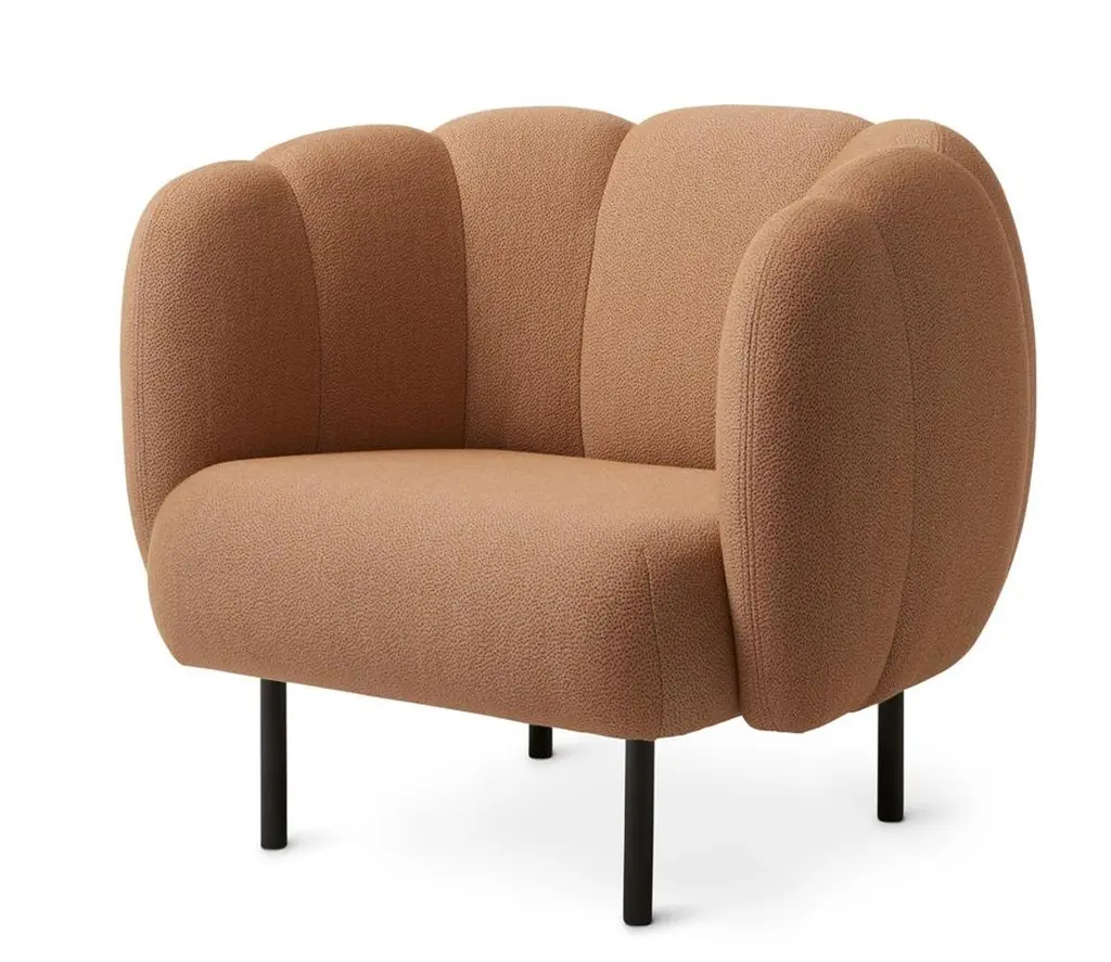 Cape Lounge chair with stitches sprinkles Latte by Warm NordicDimensions: D95 x W84 x H 80 cmMaterial: Textile or nubuck leather upholstery, Wooden frame, Powder coated black steel legsWeight: 36.5 kgAlso available in different colours and finishes. An elegant armchair with an organic design inspired by the puffed sleeves and layered designs of haute couture. Its soft lines and chic details make the Cape armchair a real eye-catcher. The chair is lovely to sit in, maybe even more so when accompanied by the sofa from the same range. Both items of furniture are available with or without visible stitching. In the Cape armchair's simple, yet rich design there lurks a detailed aesthetic and an implicit sensuousness. The Cape range is covered with exclusive furnishing fabrics, including 'Hero', whose soft, almost felt-like surface complements the armchairs organic shape, and which is designed by Patricia Urquiola.Warm Nordic is an ambitious design brand anchored in Nordic design history and with a timeless, aesthetic style that inspires you to appreciate the little things in life. The company is the result of several years’ intense work on developing a new design brand with design history, quality and personality at its core. Warm Nordic boasts a colourful and charming universe of furniture, lamps and accessories full of personality. Our designs encapsulate the Nordic spirit, which in its essence is timeless, inclusive and warm.