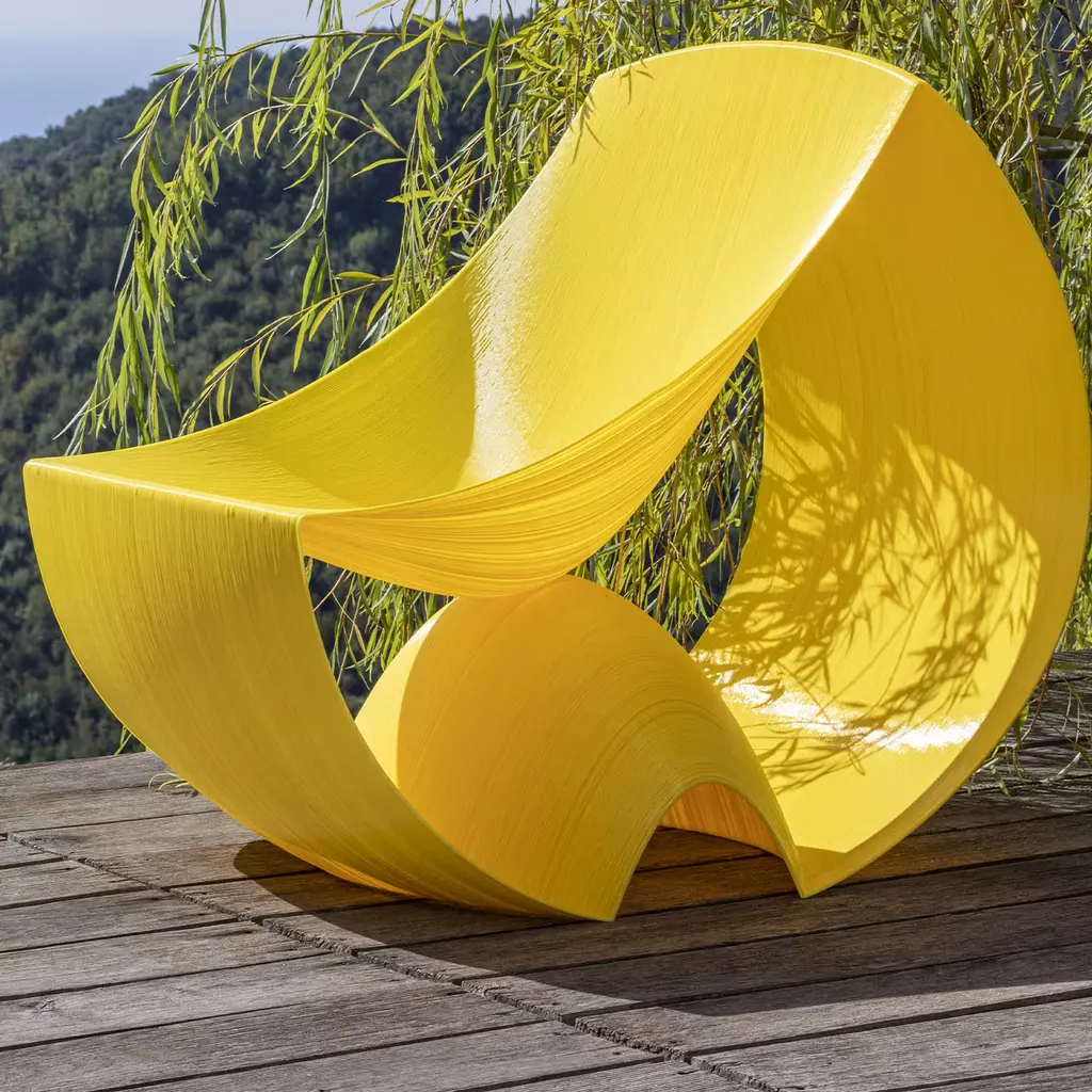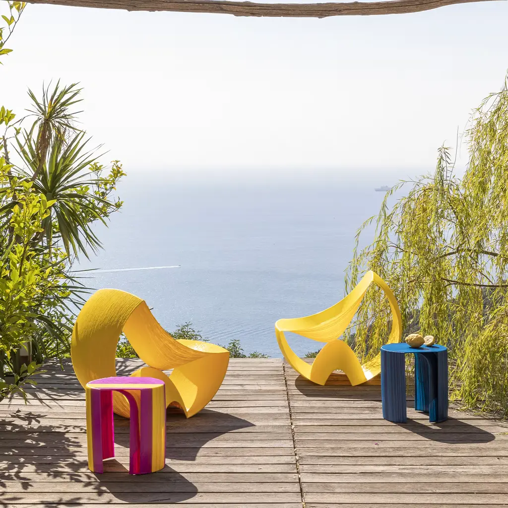 Discover Capri, a creation designed by Medaarch in 2021. Its rounded silhouette offers a contemporary decorative twist for various spaces. The curved shape and high backrest provide comfort and a strong iconic character. Crafted from PLA, Capri's colors reflect the Gulf of Naples' famous island. Made in Italy, Capri chairs by Medaarch boast a striated color pattern and are suitable for outdoor use. Please, ask the Concierge service for further information.