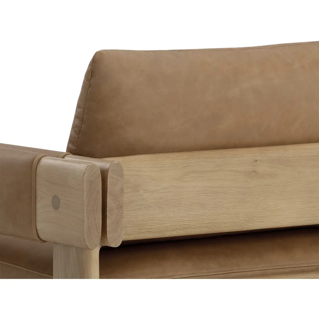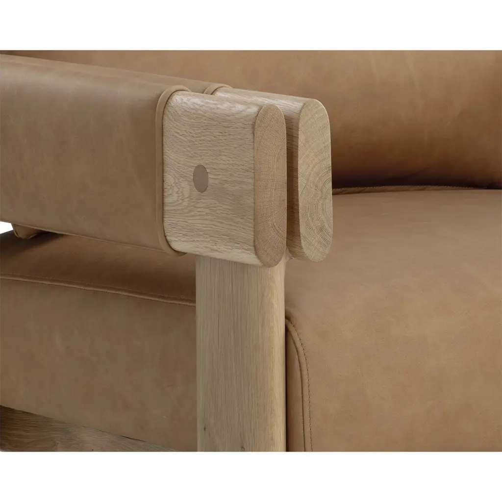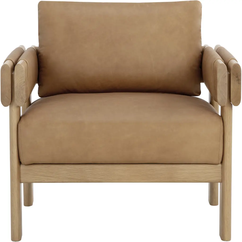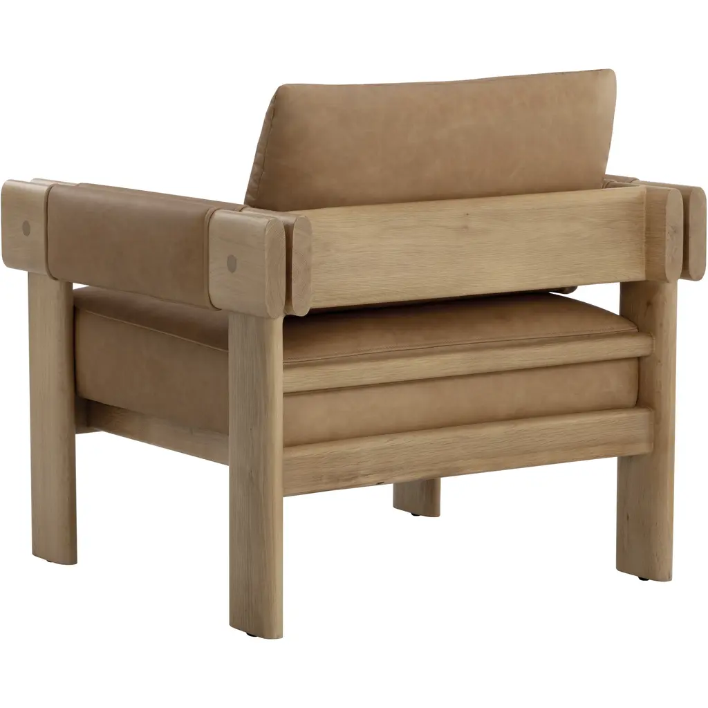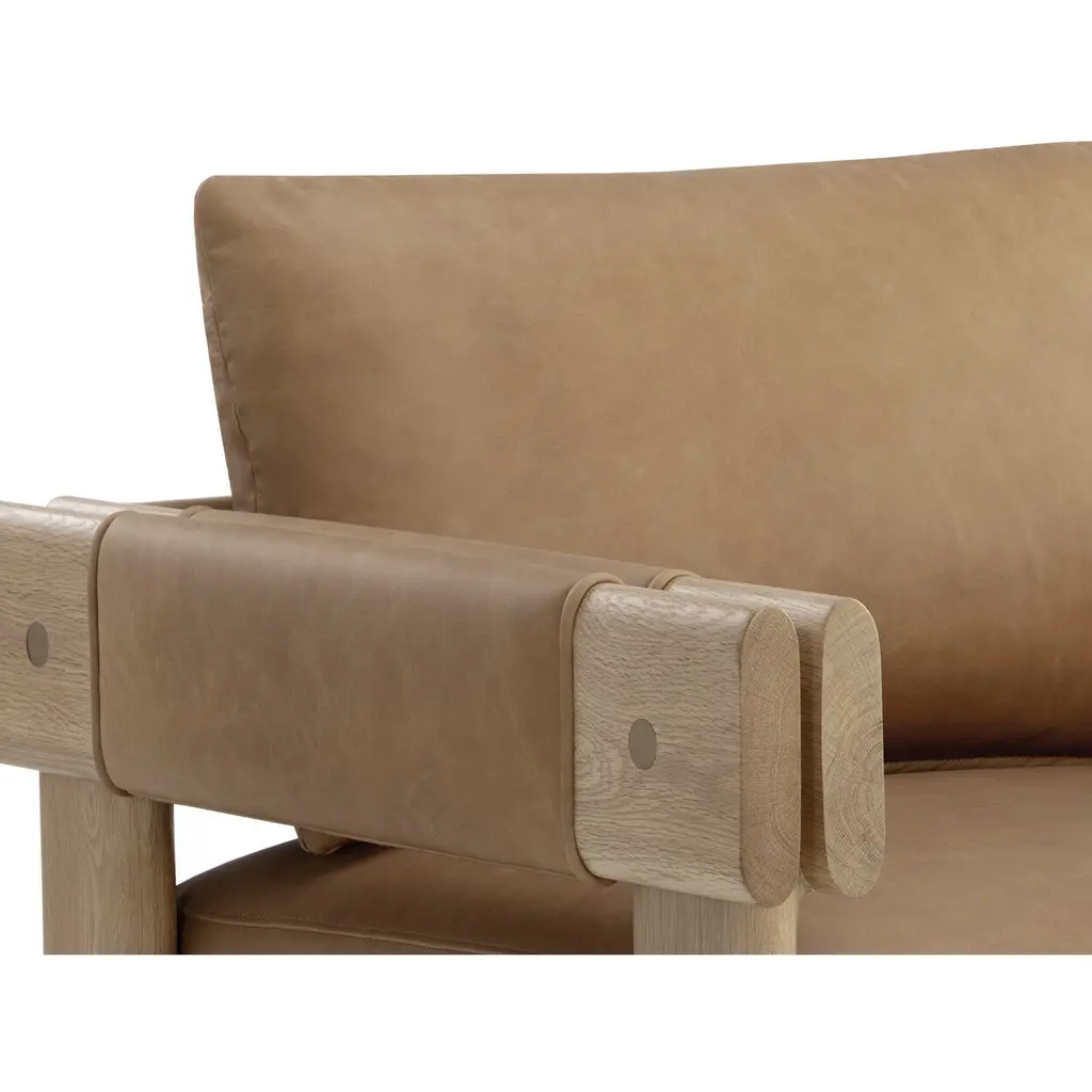 Crafted from natural materials, the Carmichael Lounge Chair adds an inviting atmosphere to any room. The beautiful characteristics of rustic oak wood and ludlow sesame leather are emphasized through the chair's double armrest design. As wood is an organic, porous material, these pieces will contain natural variation of texture and may also exhibit fine indentations and cracks. Wood pieces will also display a disparity of colour and grain, and visible knots and burls that add to the character of each piece. Handle with Care: This design has been crafted with 100% leather. Leather is a natural material as such, colour variations, markings, wrinkles, grooves and light scratches are acceptable and appreciated characteristics. No two pieces are alike. Visit our Product Care page for more information on how to ensure the lasting beauty of this piece.