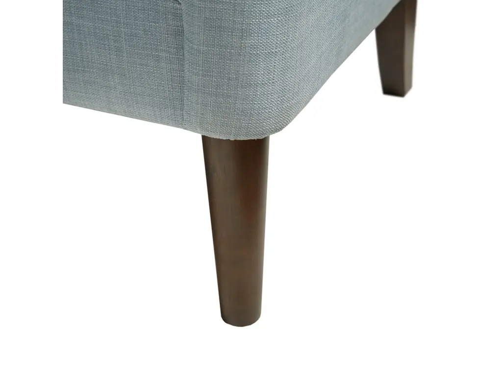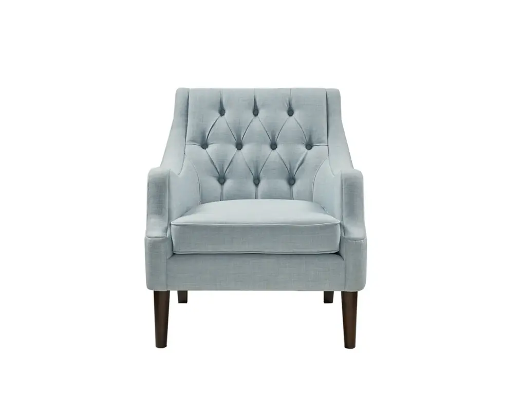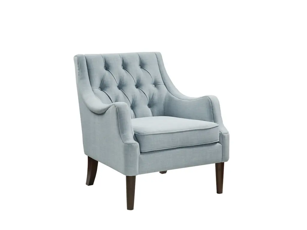 This vintage chair has graceful, sweeping serpentine arms and a softly diamond- tufted back resting on elegantly on tapered posts. Leg assembly required.