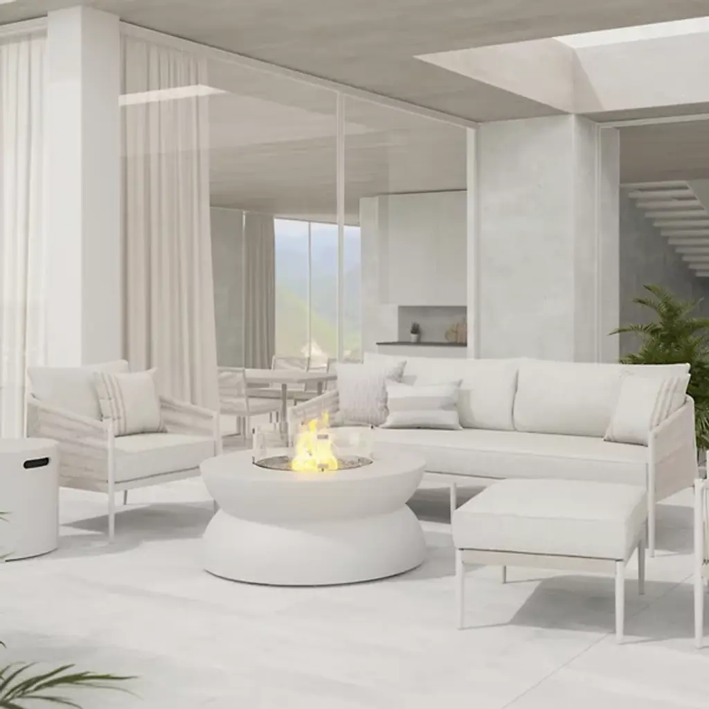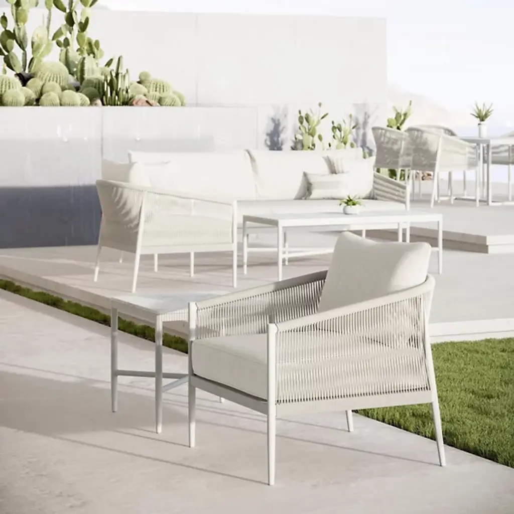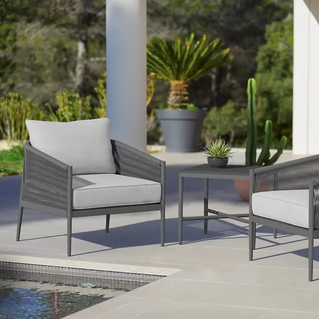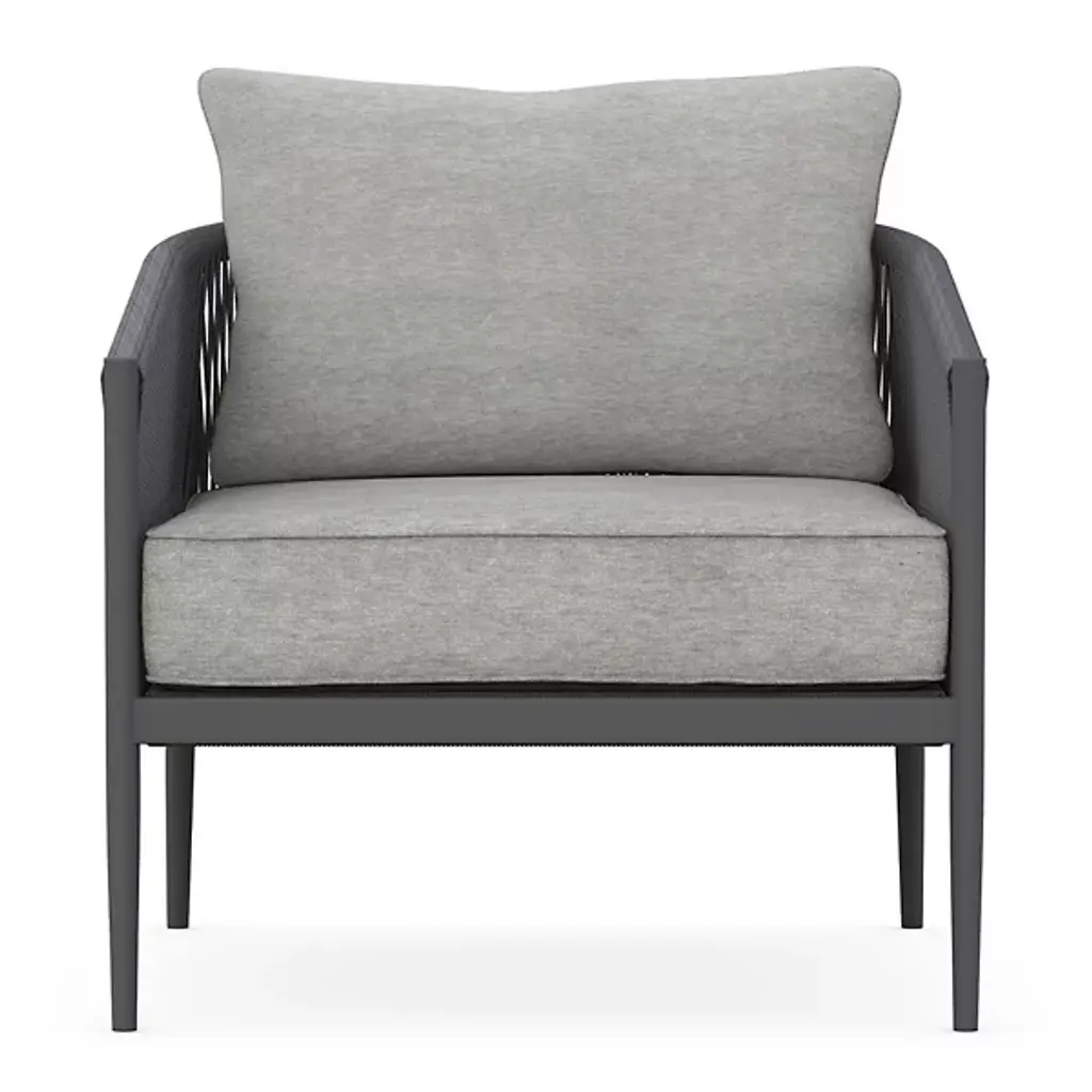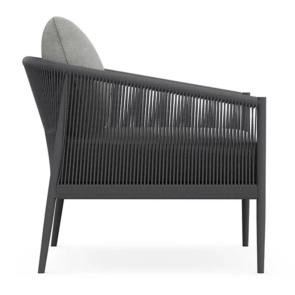 Bring a stately, enduring appeal to interior spaces with the clever and coastal Catalina Outdoor Club Chair from Azzurro Living. A powder-coated aluminum frame offers steady support, contrasting rounded legs, and a curving back with a squared-off seat. Interwoven strands of all-weather rope fill in the empty space between the arms and the seat, while a deep seat cushion and plush back pad of high-density foam provide ample padding, enclosed within a strong synthetic Solvita fabric able to keep its color amid rain and sun and years of use.