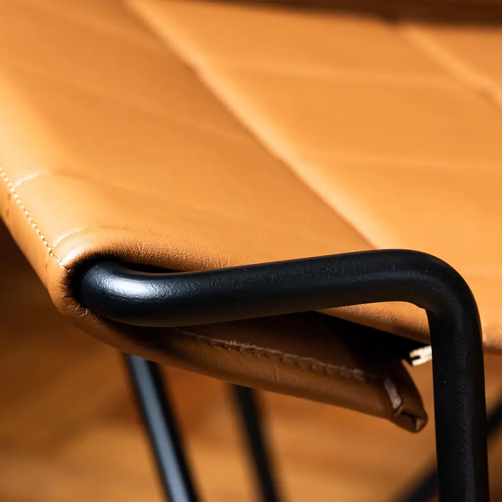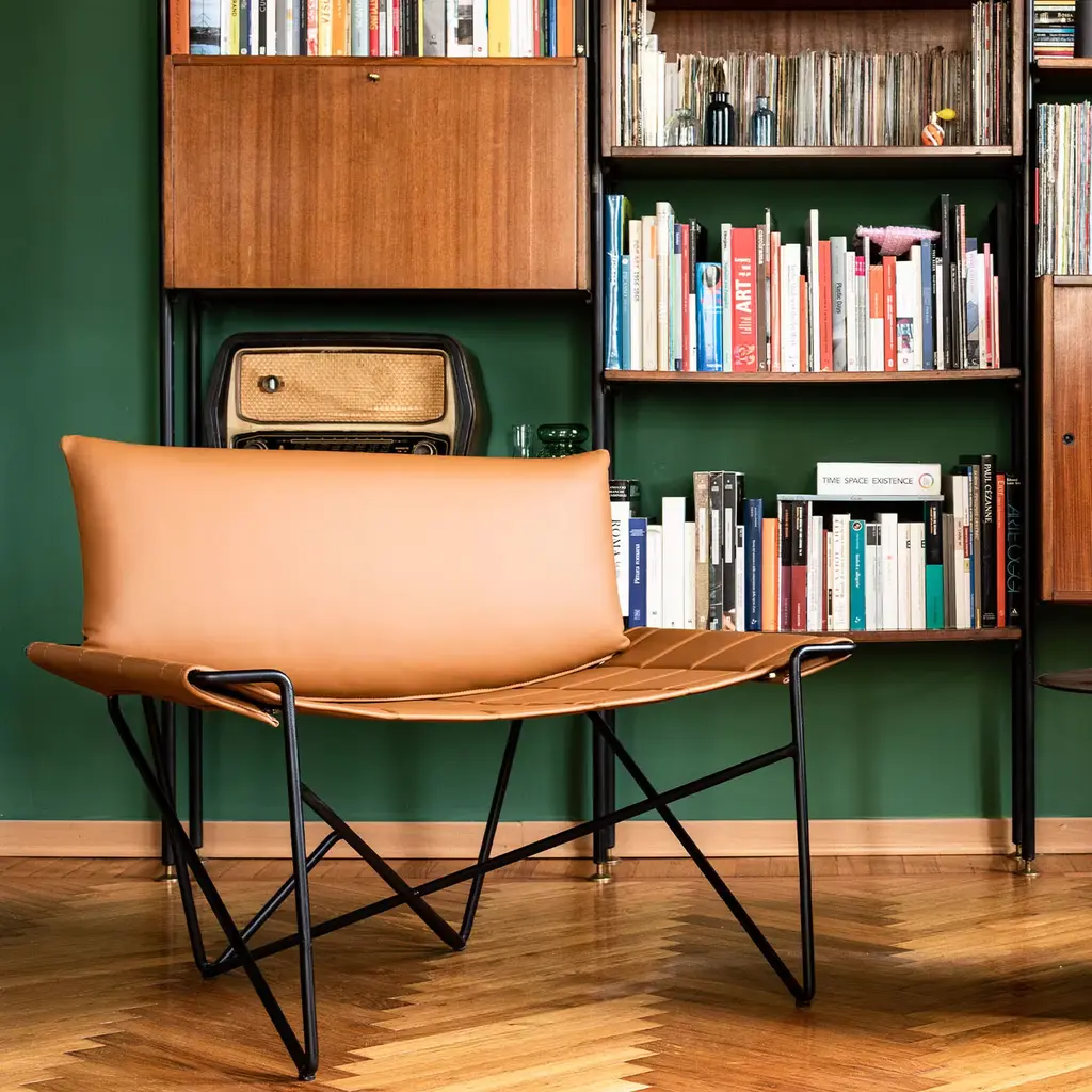 The Caterina Brown Leather Lounge Chair embodies a harmonious blend of strength and elegance. Designed by Luca Cellino, this chair features a striking iron frame that is both robust and graceful, wrapped in supple leather and embellished with a sophisticated quilted pattern. The Caterina armchair stands out with its bold, angular lines that evoke a sensual character, accentuating the balance of contrasting elements. The detachable cushions offer versatility, making it easy to update both appearance and comfort. Meticulously crafted, each armchair is a unique piece that reflects exceptional artistry and attention to detail. Customization options are available, please contact the Concierge for more information.
