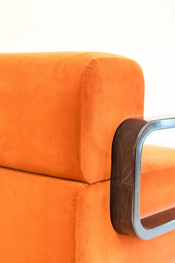 The Cayenne lounge chair is a deft homage to midcentury design. Designer Marie Burgos has taken the clean lines that defined seating designs of that era and given them a luxurious new simplicity. The plush upholstery — available in a full range of fabrics in multiple colorations and textures. — plays out stunningly against the curved lines of the arms and legs in gleaming lacquered wood. The result is comfortable seating for today that cleverly reflects the best of an earlier era. Cayenne Ottoman SOLD SEPARATELY