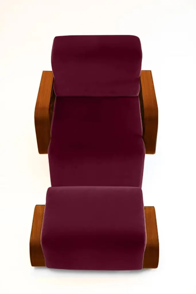 Cayenne Lounge Chair, Cranberry Velvet/high Gloss Varnish Brown Solid Oak