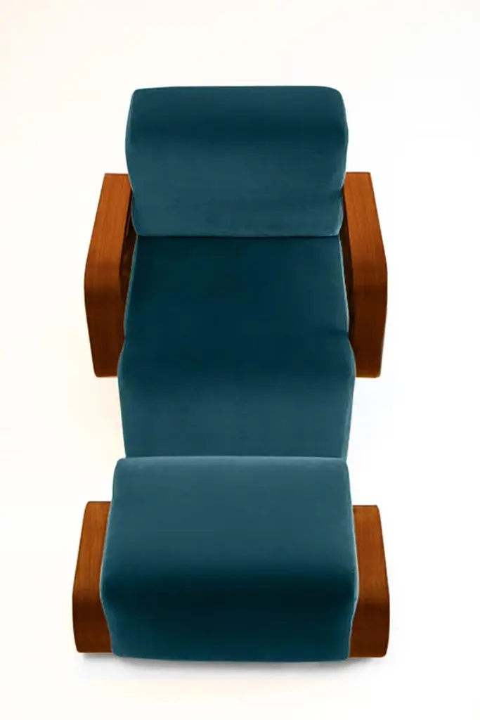 Cayenne Lounge Chair, Ming Velvet/high Gloss Varnish Brown Solid Oak