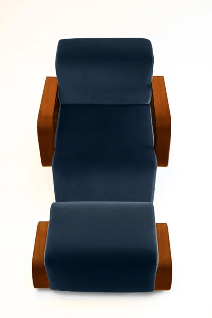 Cayenne Lounge Chair, Ocean Velvet/high Gloss Varnish Brown Solid Oak