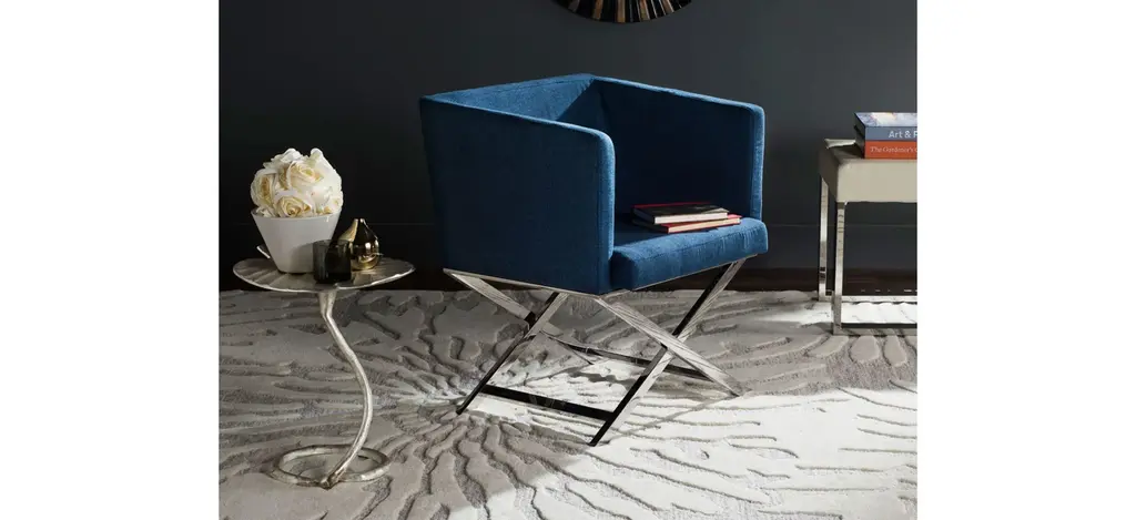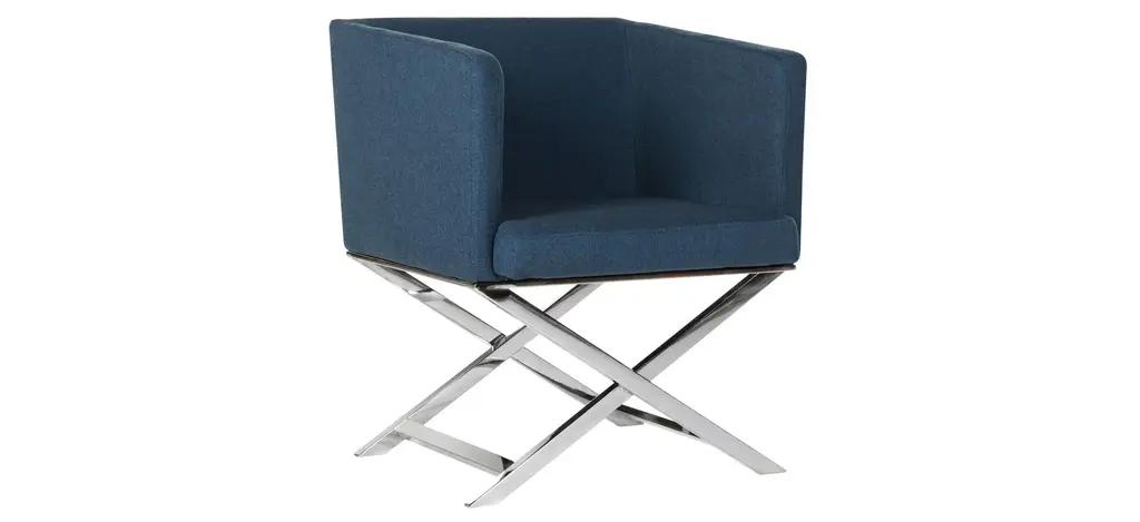 Create a dramatic scene in any space with this Celine Chair. A designer favorite, its plush, welcoming seat is upholstered in a modern navy hue that complements the metallic shine of its polished chrome finish.