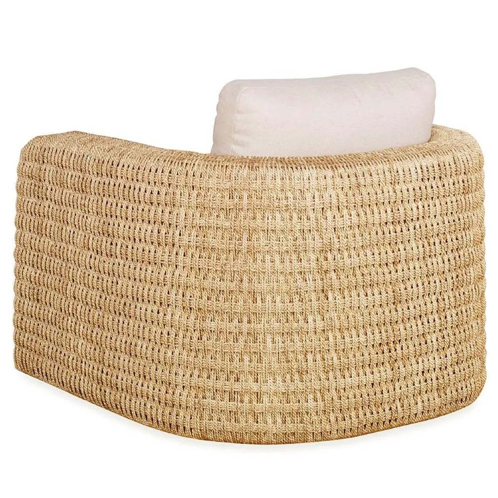 Century Bottega Cream Flax Upholstered Natural Rattan Swivel Lounge Chair