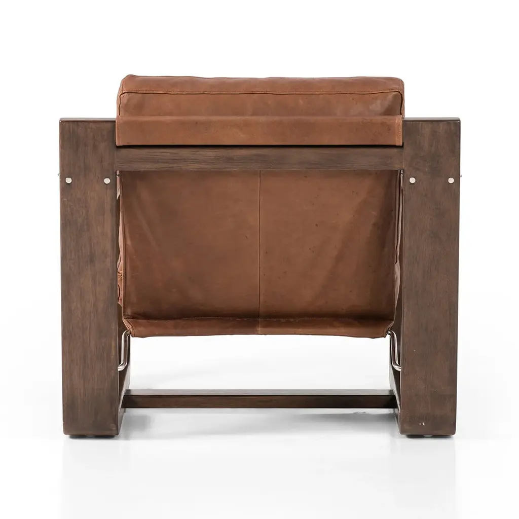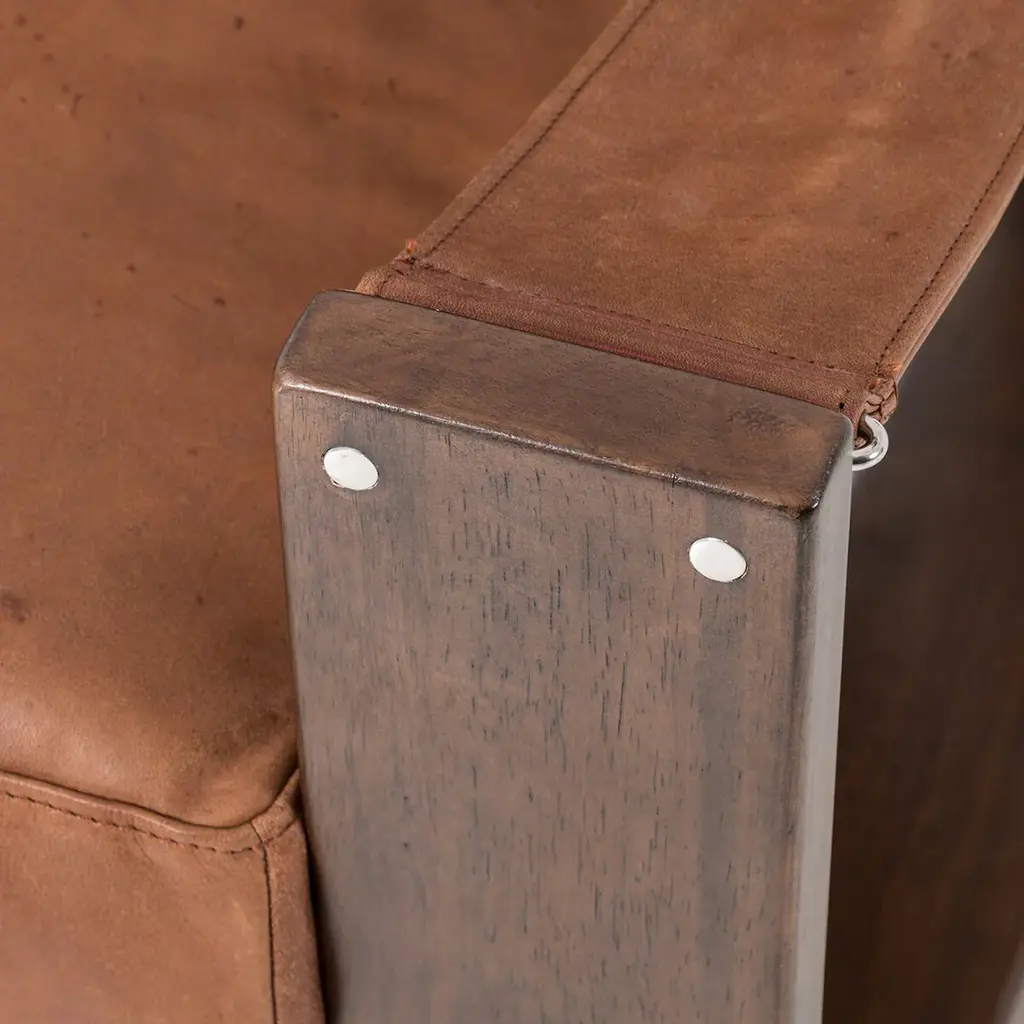 The classic sling chair gets a grand, elevated look. Solid wood frame is shaped, curved and smoothed on all edges. Cushioned seat and back are upholstered in top-grain leather. Sourced from one of the oldest family-owned tanneries in Italy's Bassano del Grappa, heirloom leather is salvaged and processed from upcycled hides featuring an abundance of natural markings, scars and color variations. The result? Beautifully supple, buttery soft hides with an unmatched depth of color and richness, and an authentic lived-in look. Ships In 10-14 Business Days In Stock Early December Classic sling design Top grain leather This image is for illustrative purposes only. The colors shown are accurate within the constraints of lighting, photography, and the color accuracy of your screen.