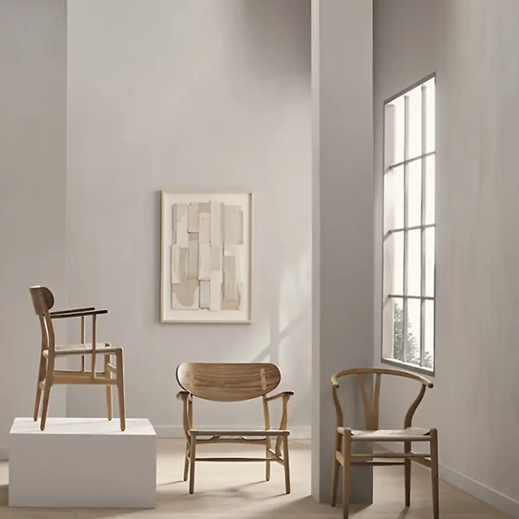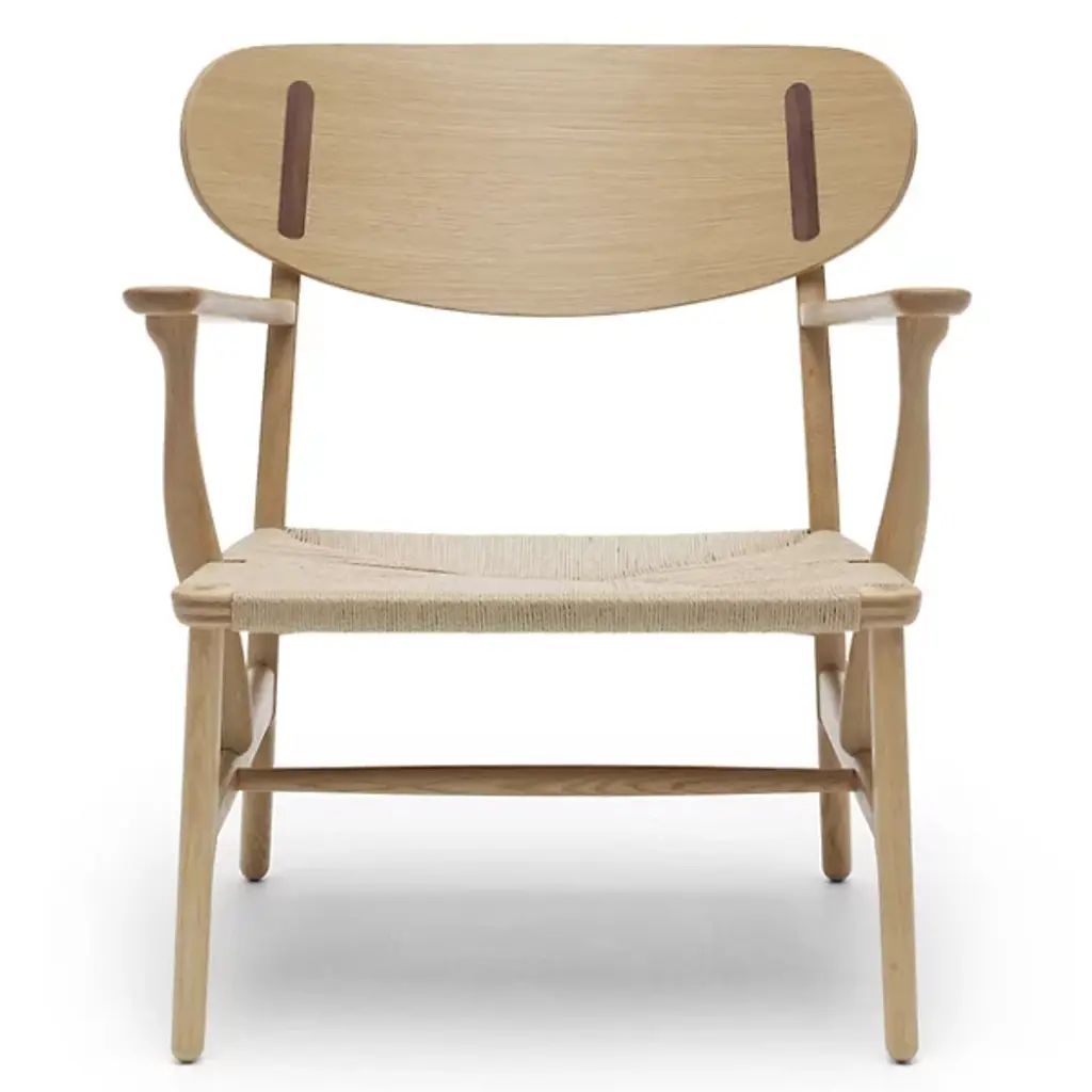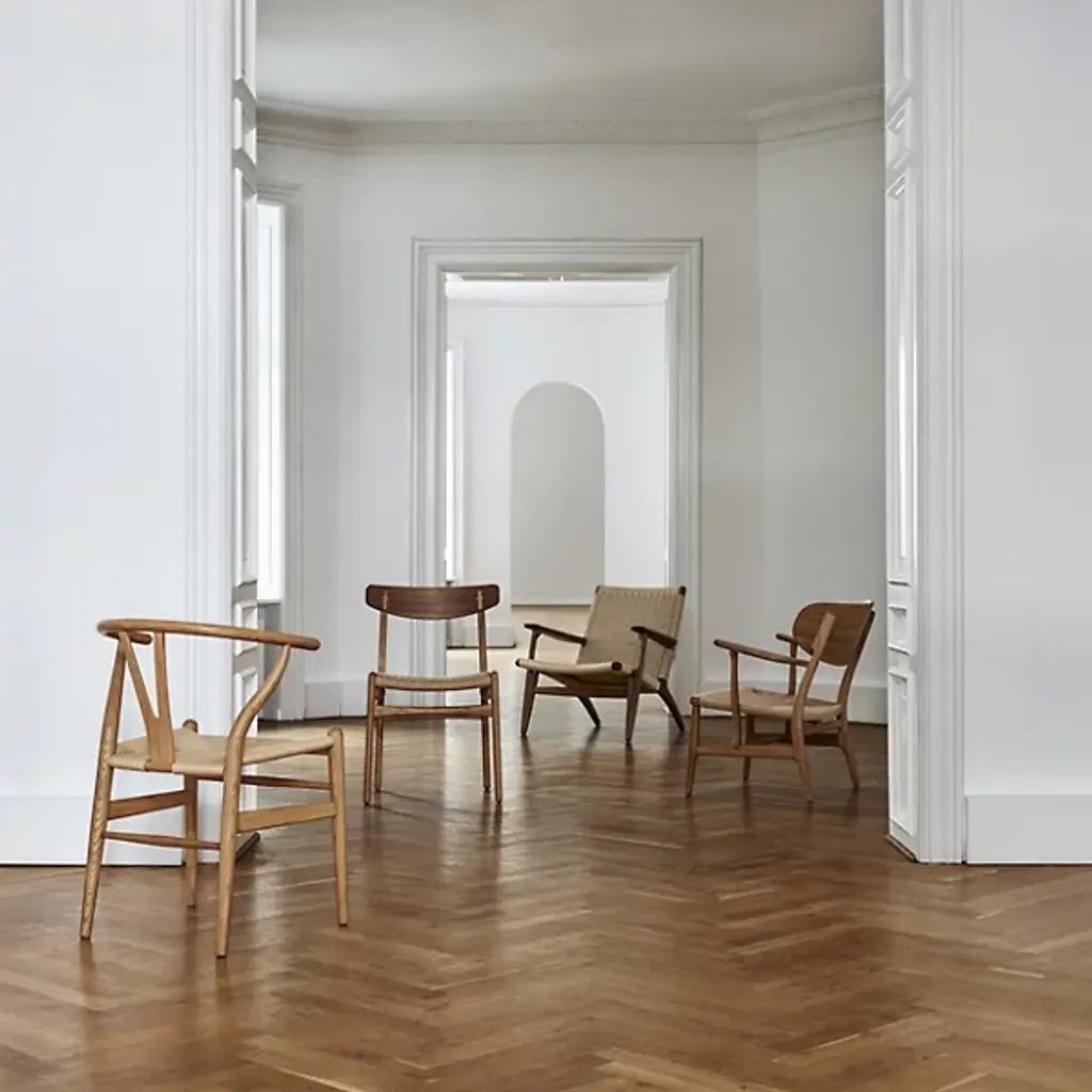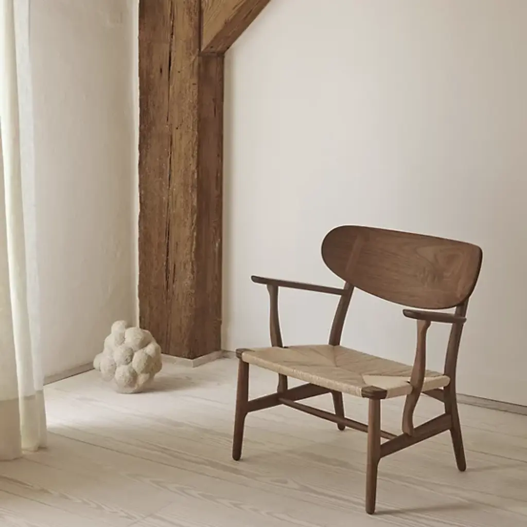 Pared-down elegance embodies the styling of Carl Hansen’s CH22 Lounge Chair. Designed by Hans J. Wegner in 1950, he was often referred to as the “master of the chair,” and it’s no question why. With an inviting ergonomic design and wide stance, the CH22 beckons you to rest in its embrace. Made of a solid wooden frame and paper cord seating, it’s one of the most highly sought-after and beloved pieces of furniture that Wegner has ever created.