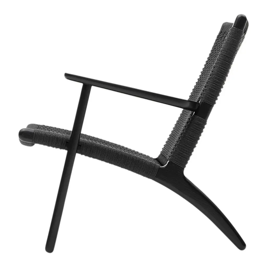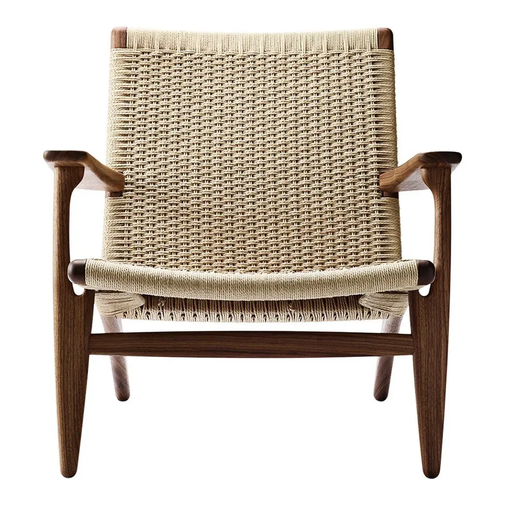 Hans J. Wegner's CH25 Easy Chair's special leg profile probably give this Wegner classic chair its most distinctive feature. The broad armrests add to the comfort of the CH25 chair and make this Wegner chair easy to get up from, even with its low seating and reclining back. Skilled weavers used over 400 meters of paper cord to make the distinctive pattern on the pack of the Wegner CH25 Easy Chair.