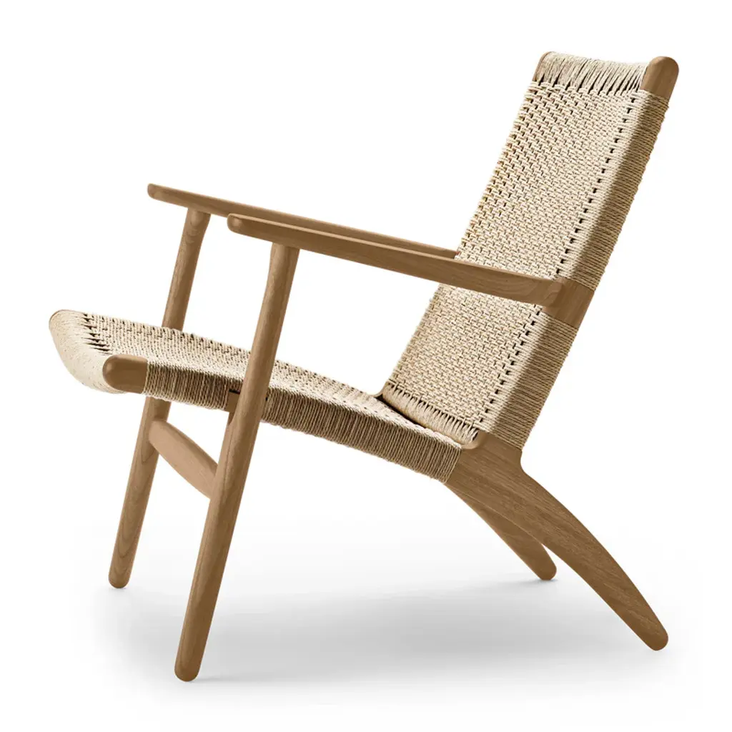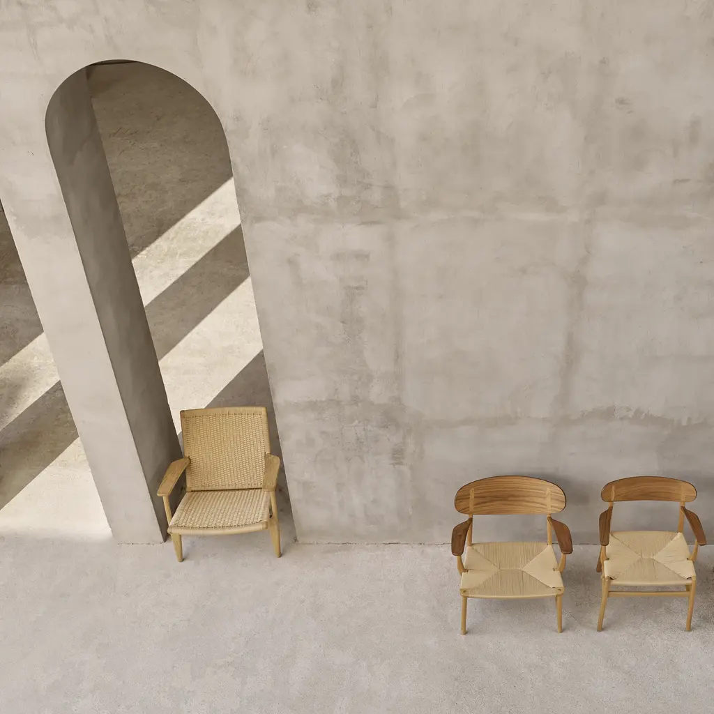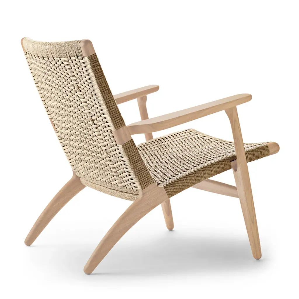 Featuring intricate detailing and superior craftsmanship, the CH25 Lounge Chair from Carl Hansen is a clean-lined beauty ready to elevate any space in your home. Crafted from solid oak wood, the paper cord seat and back are handwoven, taking over ten hours to complete. Originally designed by Hans J. Wegner in 1950, today's version still offers a striking silhouette and distinctive shape that holds true to his vision. Great for an indoor lounge area or sunny entertaining spot, this lounge chair is ready to cradle you in comfort for years to come.Highlights