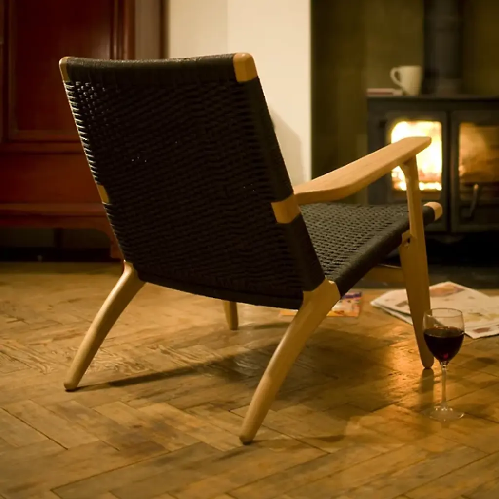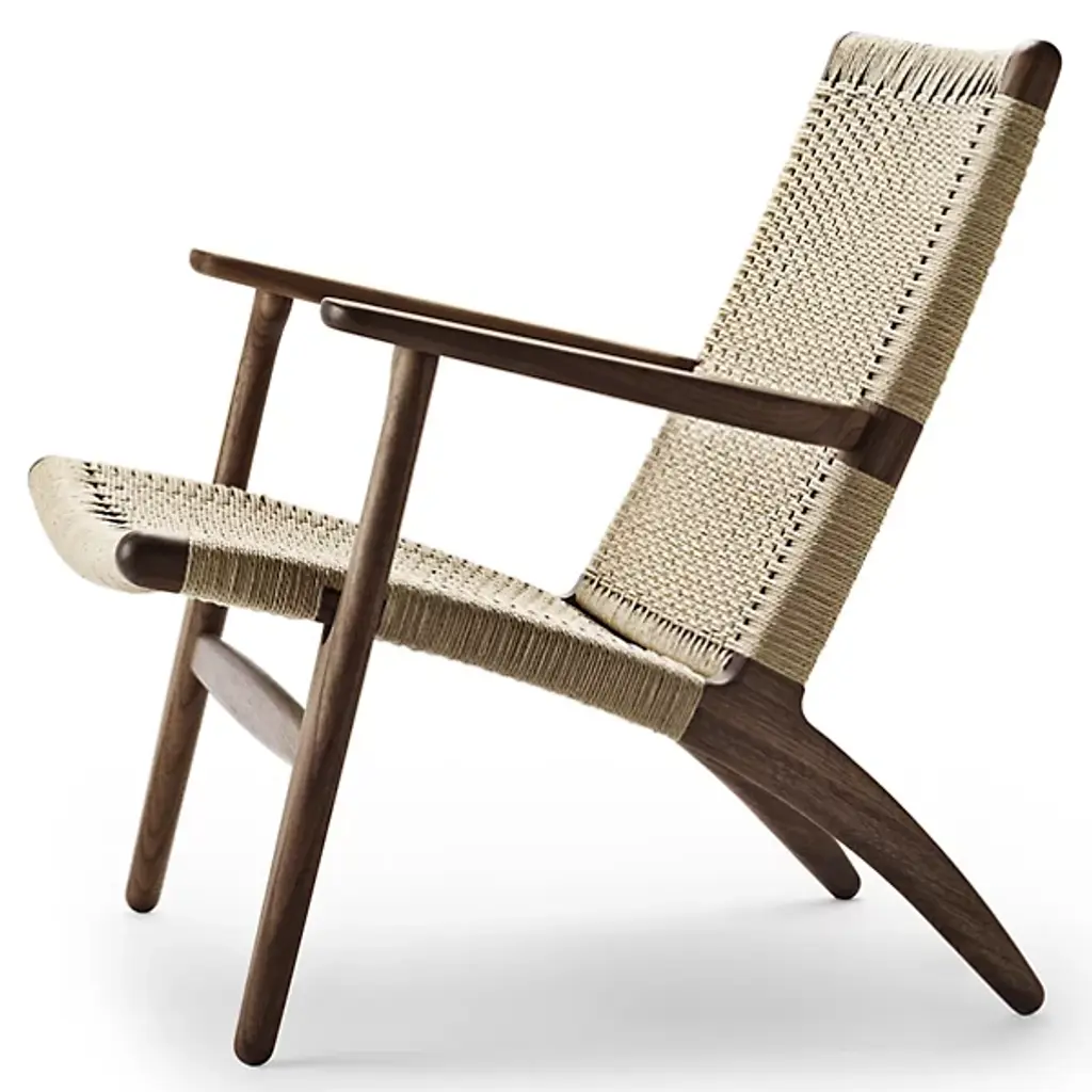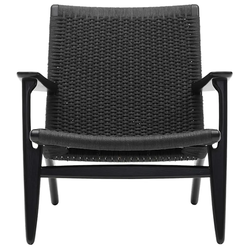 The Carl Hansen CH25 Lounge Chair is the ultimate expression of designer Hans J. Wegner's use of woven paper cord. The material is lightweight, yet exceptionally strong and comfortable. More than 400 meters of it are used to weave the back and seat around the frame. The design itself is dynamic and light-looking, with tapered oak legs and a slightly backward tilt.