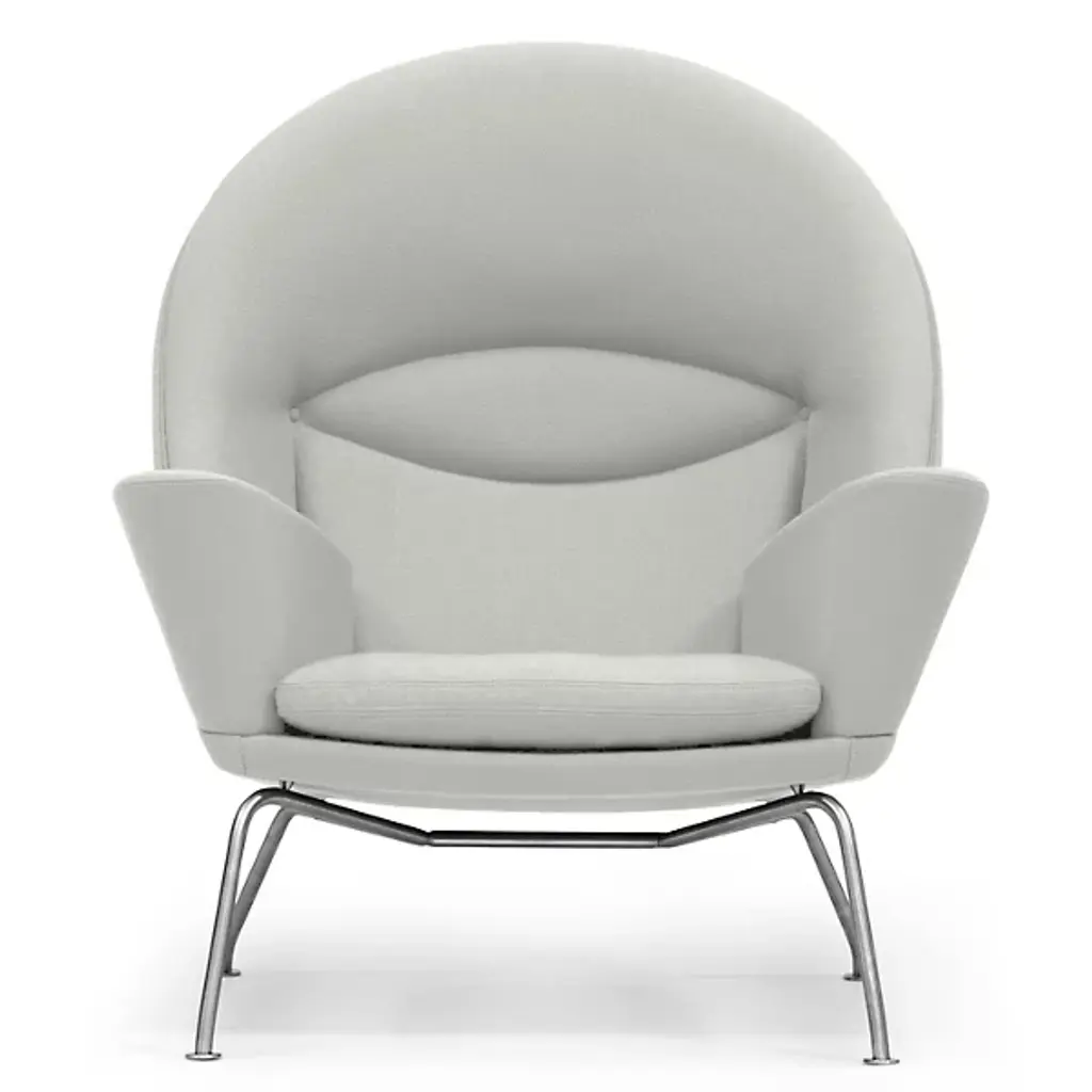 One lounge chair deserving of a second look. The Carl Hansen CH468 Oculus Lounge Chair was originally designed by Hans J. Wegner in 1960, but wasn't put into production until 2010. The design was certainly ahead of its time, what with its oversized headrest, sloped arms and eye-shaped detail in the smooth upholstery. The stainless steel base keeps the seat tilted back slightly for maximum comfort.
