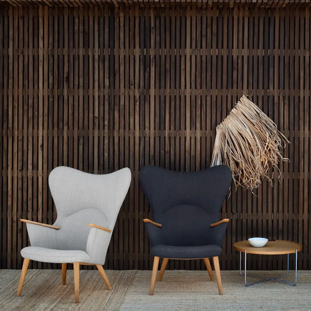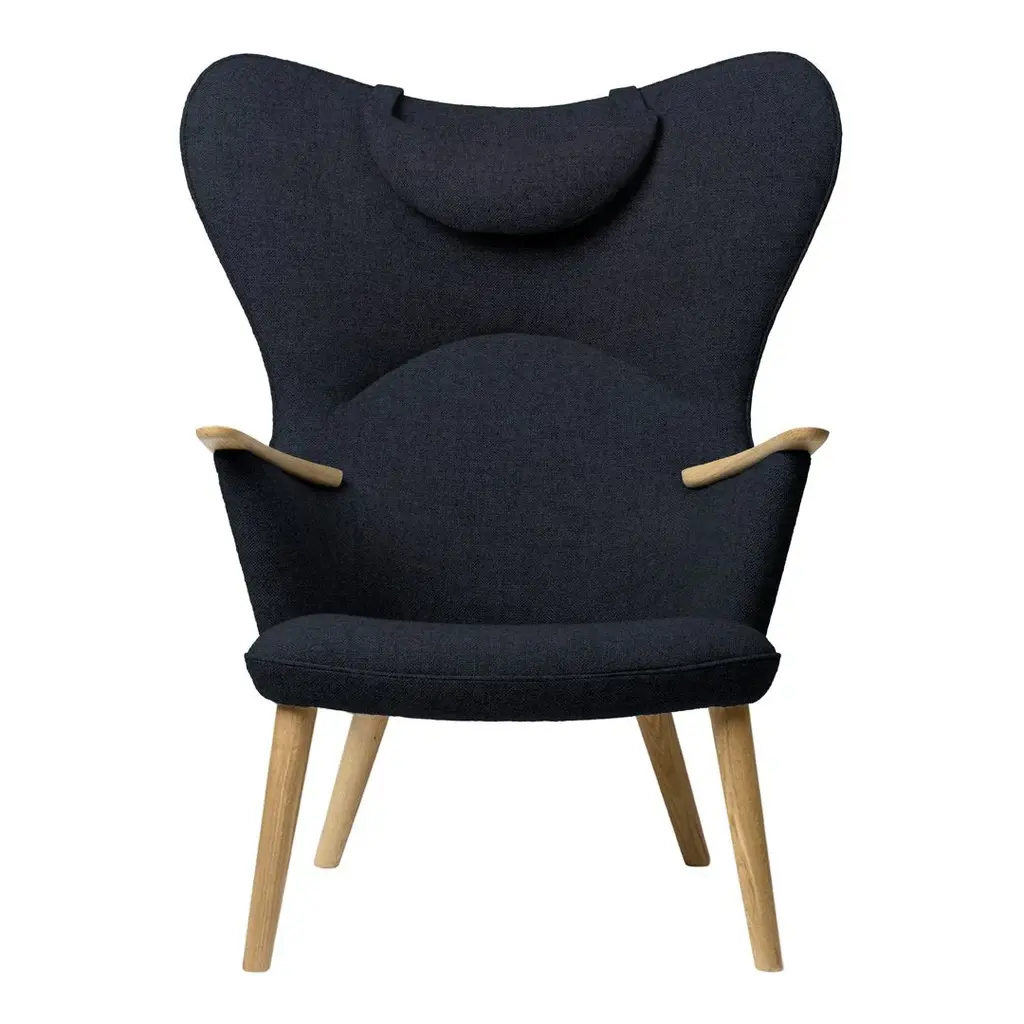 The neck pillow is not included and can be purchased separately. The CH78 Lounge Chair was originally introduced in 1954 and was an extension of Wegner's CH71 Mini Bear Chair. Defined by a series of inviting curves that provide a warm embrace, the CH78 lounge chair's special aesthetic character comes from the way it balances soft, rounded curves with dynamic geometries and fine details, such as signature wood 'claws' on the chair's armrests. This light, modern armchair is both soft and very supportive, and provides ergonomic comfort in the neck, back and body that encourages rest and relaxation.