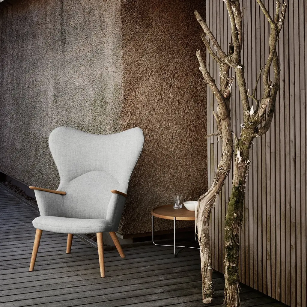 The neck pillow is not included and can be purchased separately. The CH78 Lounge Chair was originally introduced in 1954 and was an extension of Wegner's CH71 Mini Bear Chair. Defined by a series of inviting curves that provide a warm embrace, the CH78 lounge chair's special aesthetic character comes from the way it balances soft, rounded curves with dynamic geometries and fine details, such as signature wood 'claws' on the chair's armrests. This light, modern armchair is both soft and very supportive, and provides ergonomic comfort in the neck, back and body that encourages rest and relaxation.