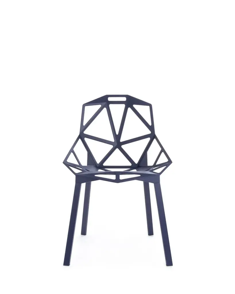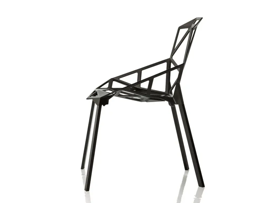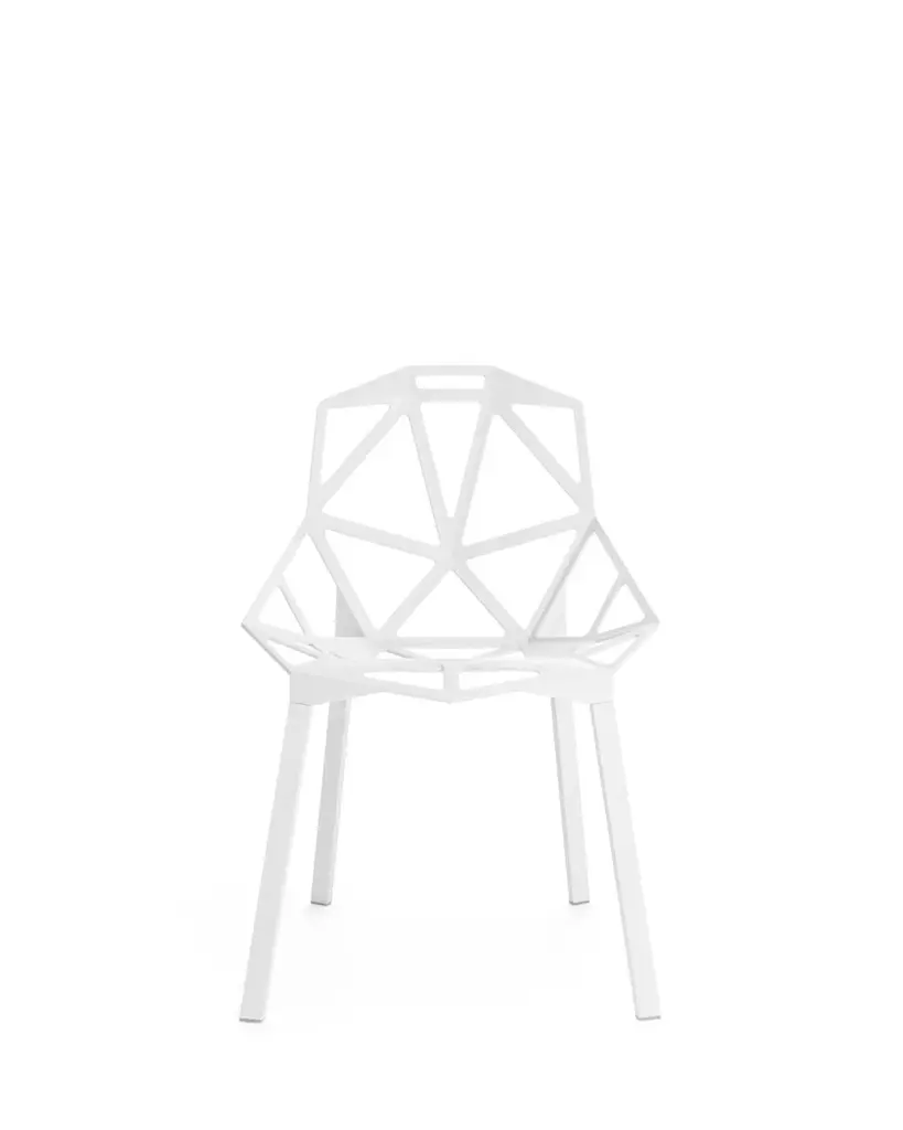 Material: legs in anodised or painted aluminium. Seat in die-cast aluminium treated with sputtered fluorinated titanium and painted in polyester powder. Suitable for outdoor use. Flame-retardant.Available cushion for indoor use in leather or in fabric (Kvadrat “Steelcut Trio” or “Steelcut 2”) and for outdoor use in polyurethane.CHAIR_ONE - Materials: frame in steel tube, gold or copper coated, or painted in polyester powder. Seat in beech plywood, in polypropylene or in polypropylene covered in fabric (Kvadrat “Divina”). Also available with front side covered in fabric (Kvadrat “Divina”, “Steelcut Trio” or “Steelcut 2”) or in leather.