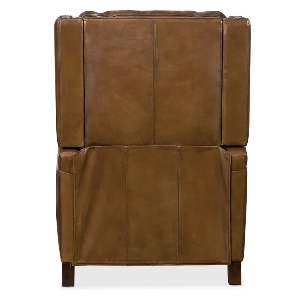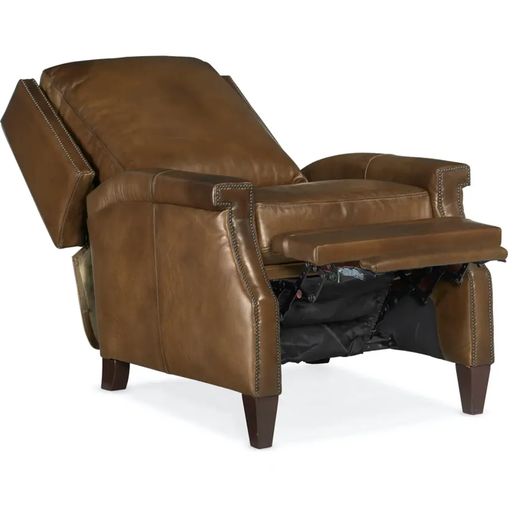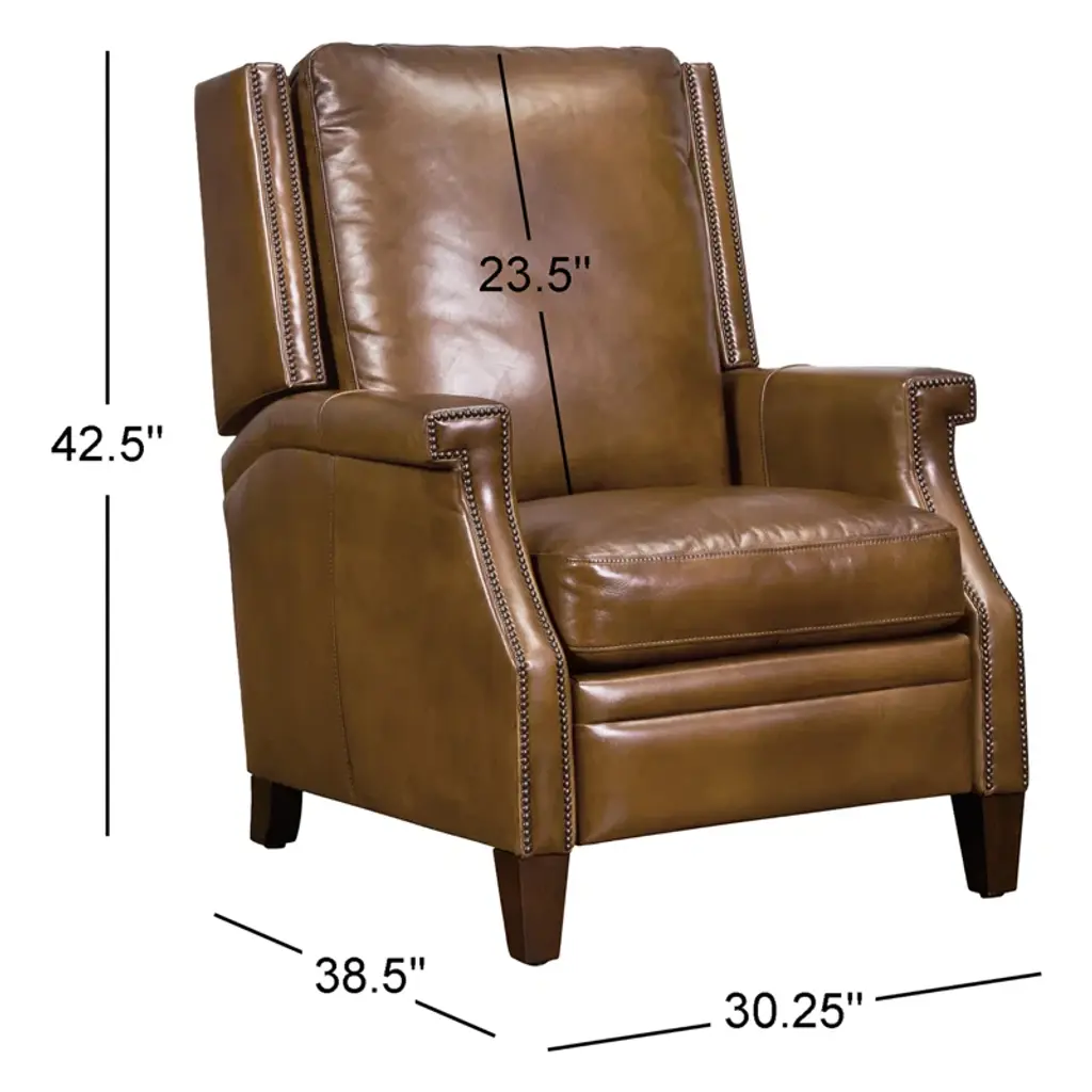 This genuine leather manual recliner has a traditional design that easily blends in with your living room or study furniture. We love its warm brown top-grain leather upholstery and the nailhead trim that lines its arms and back. There's no need to plug in this manual recliner – all you need to do is push back to recline in one of its three positions. It has a foam- and polyester-filled seat cushion that's supported by sinuous springs for just the right amount of support for every guest.