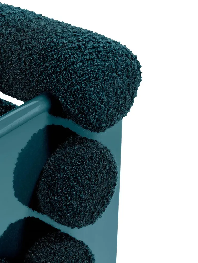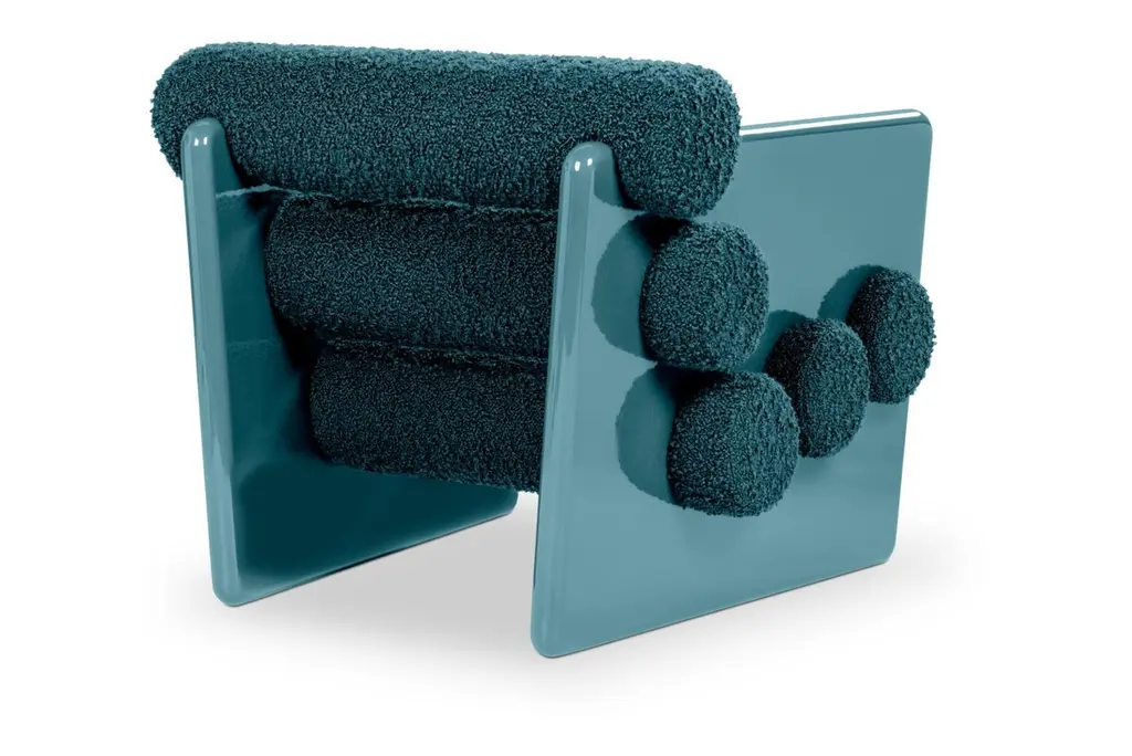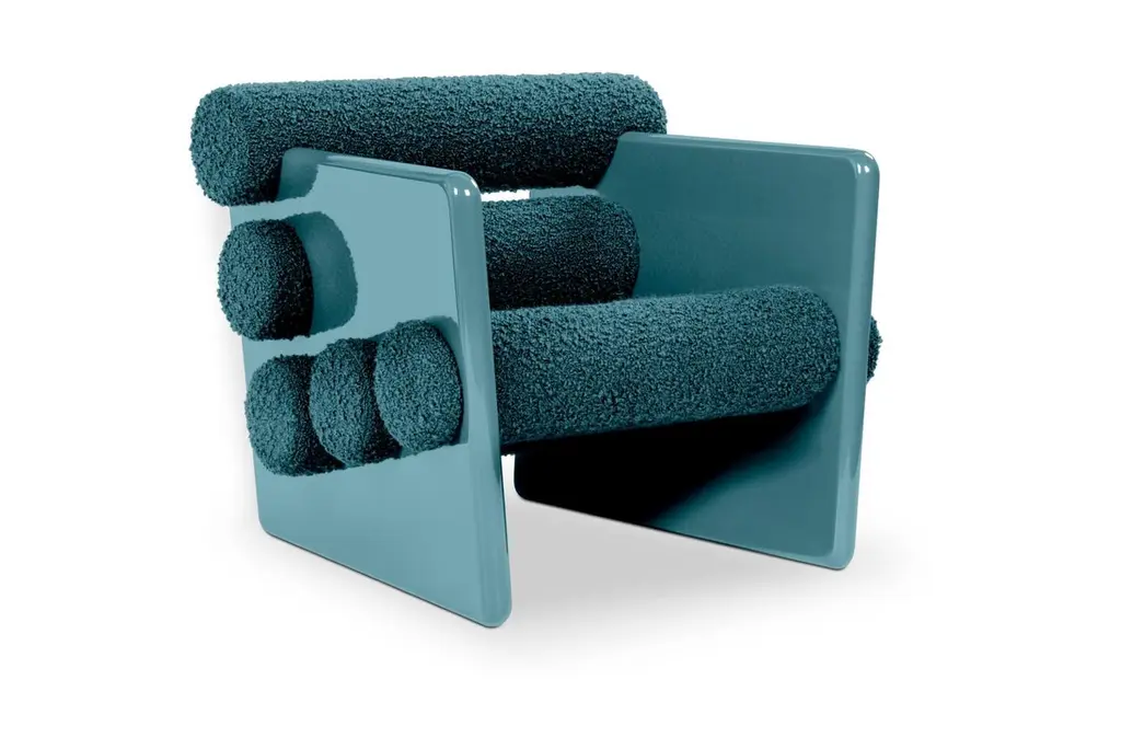 Charles Cormo Azure armchair by Royal StrangerDimensions: D 88 x W 84 x H 78 cm.Materials: upholstery, prussiana lacquered with glossy finish.Weight: 62.5 kg.Finish options:Upholstery available in all Royal Stranger’s fabric collection. Available in COM (Client’s Own Material). Arms Available lacquered in all NCS/RAL colors, or in gold, copper and silver leaf, with glossy or matte finish. Please contact us.Inspired by the 70’s, the versatile Charles Armchair balances opposing and contrasting textures perfectly.The solid and straight armrests, allied to the smooth and curve shaped seating area, interpret the ultimate comfort through a combination of everlasting and attractive design.Thanks to its size, the exuberant Charles Armchair has a wide and deep seat for a relaxing cuddle after a long day. Its accentuated curve lines and perfect poise work very well as a statement piece while the bold and robust structure captures attention in a wider room.A peculiar and fresh accent to any interior.Royal Stranger is an exclusive furniture brand determined to bring you the best unique pieces of art and design.Fusing design, art and the best craftsmanship, they strive to deliver the best state of the handmade art furniture. The design team works every day to create meaningful products that represent values such as passion, function, aesthetics and know-how. Values that are meant to represent Royal Stranger’s DNA. This dedication is present at all stages of production and the combination of craftsmanship and innovative design contributes toour final purpose: To produce certified high-quality products, made with passion and expertise and using royal materials such as gold leaf, rich woods and high quality lacquers.It was in 2013, as an architects, that Sofia Santos & Rui Santos started to push the boundaries of innovation in several retail design concepts for some of the best stores in Portugal. This will has always been present in their work, and that’s how the brand was born.