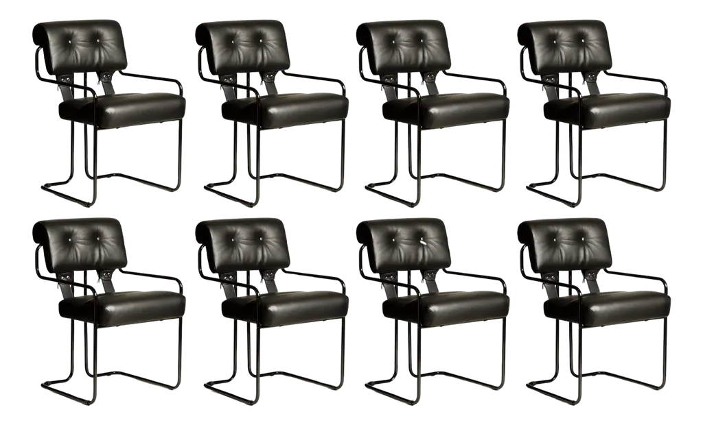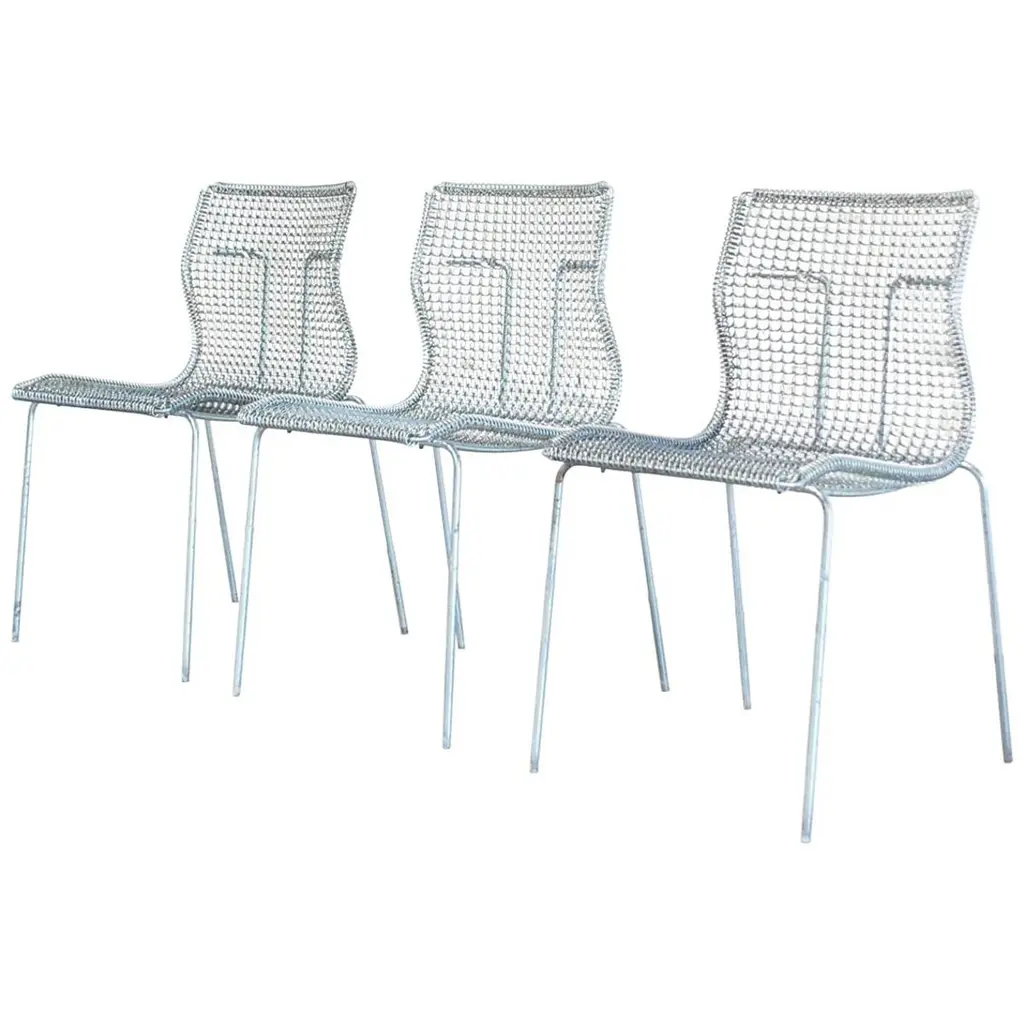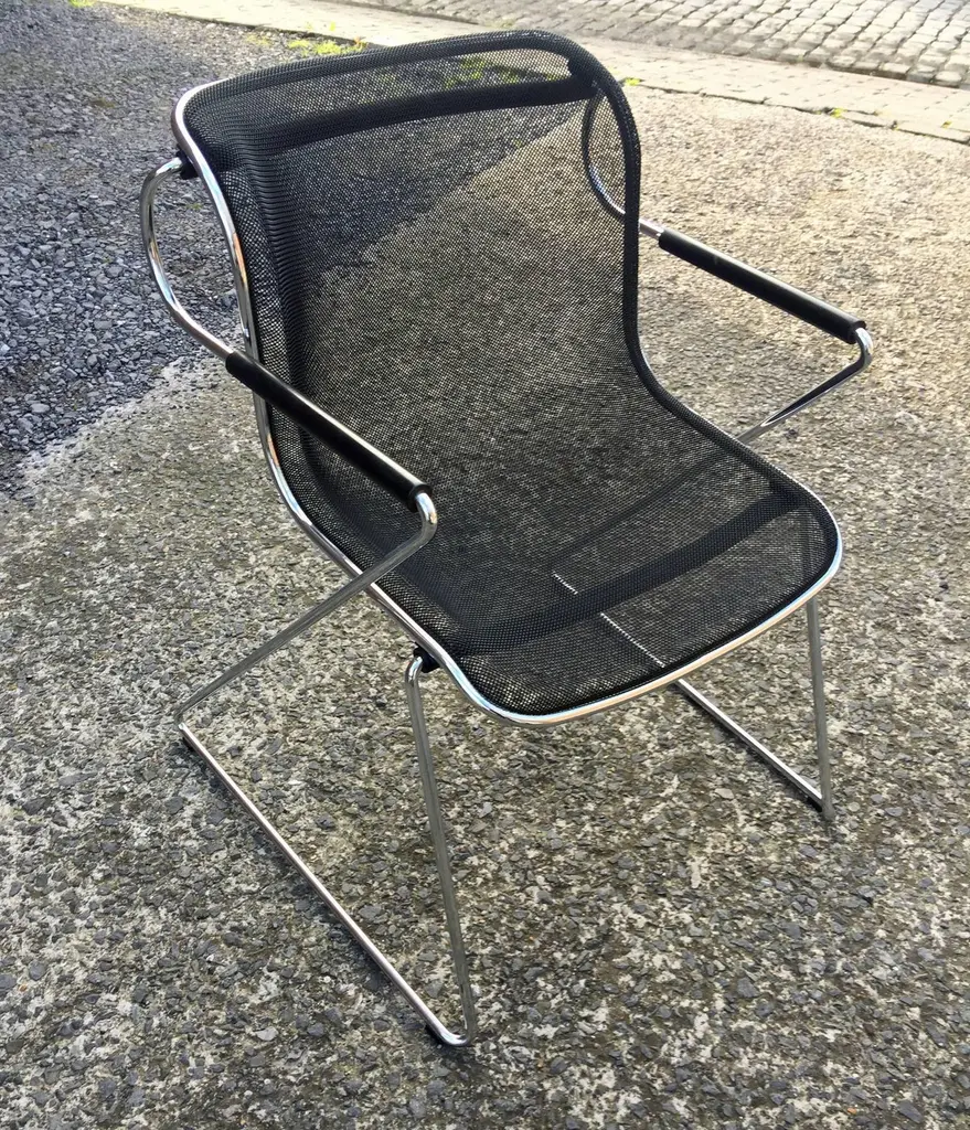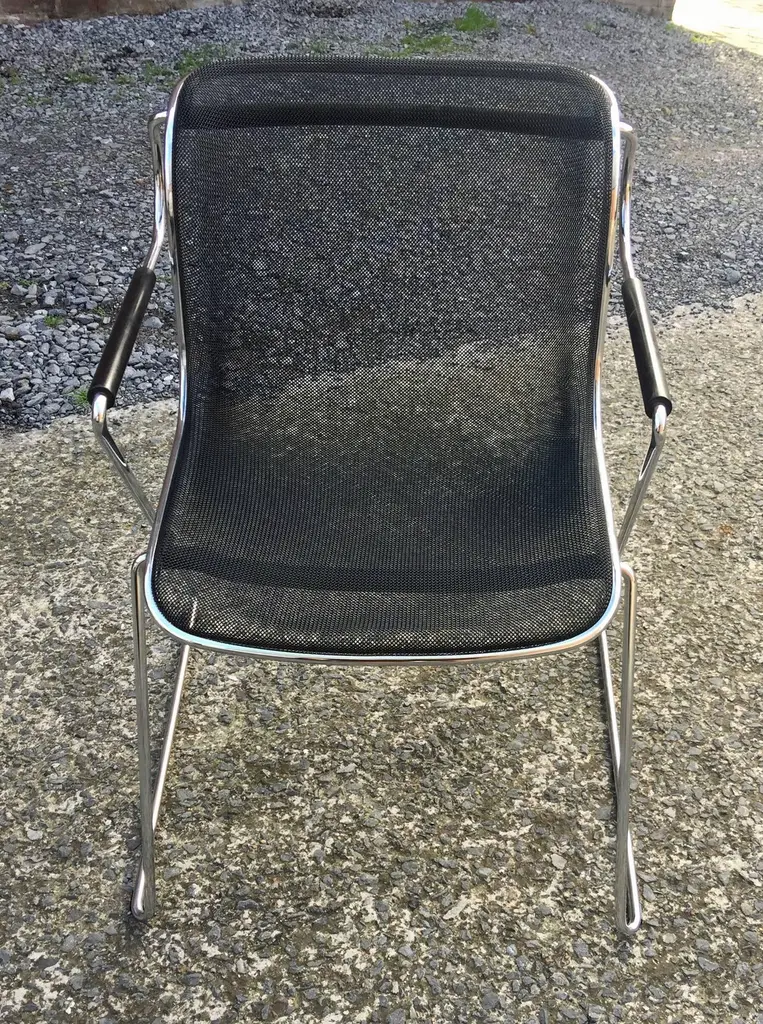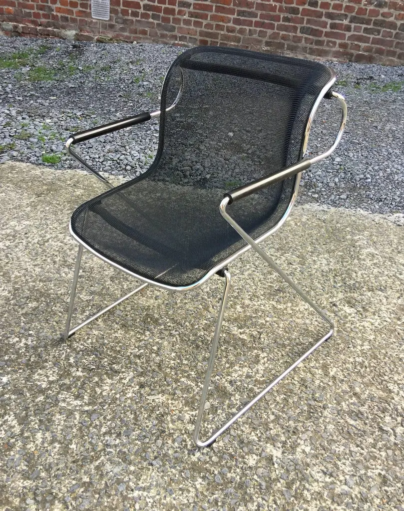 Charles Pollock, set of height chairs in chrome and meshed metal. Penelope model. Edition Castelli, 1982.