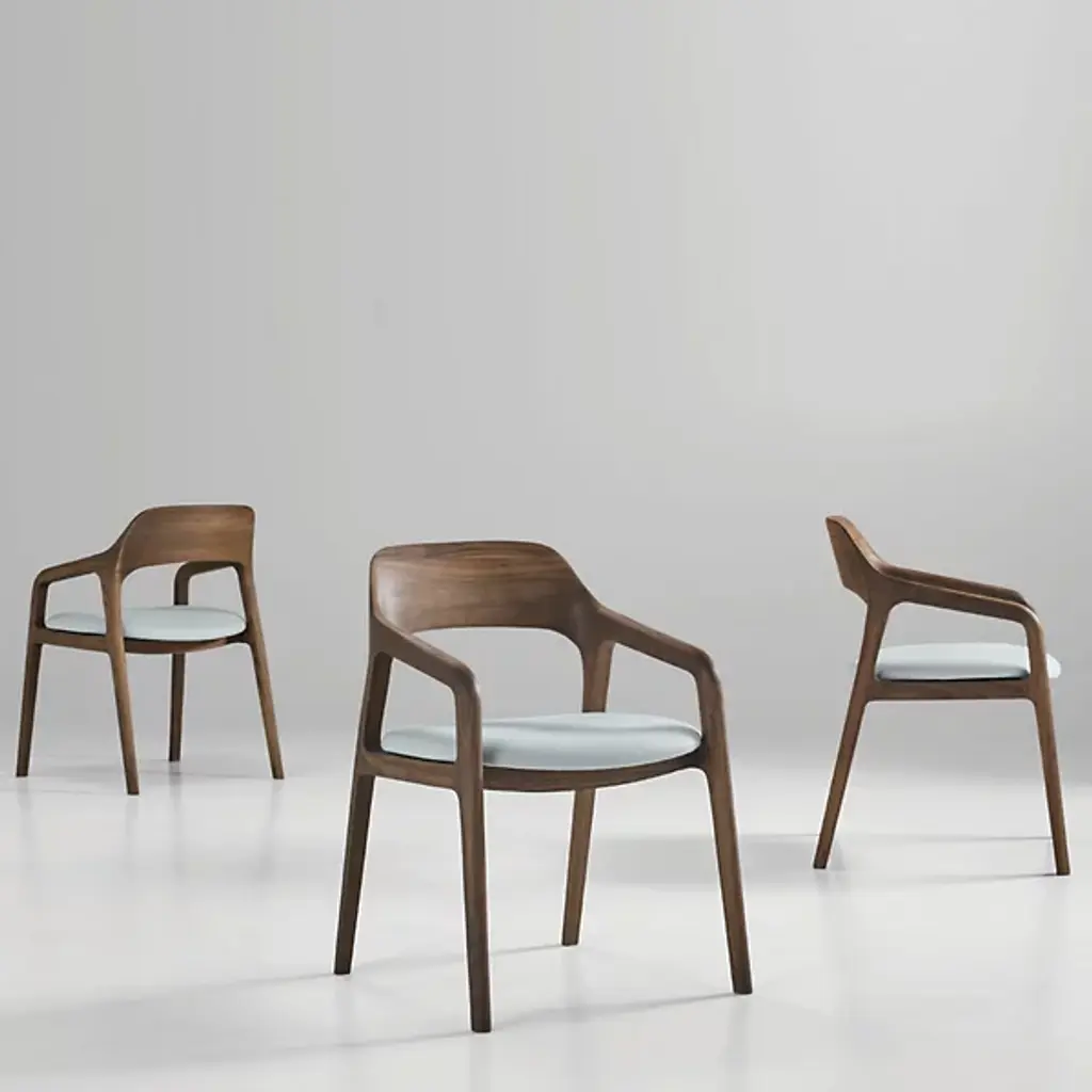 The Charlotte Armchair from Bernhardt Design employs geometric precision as its primary design language, where angular framework meets carefully calculated curves. This approach results in a chair that reads as architectural furniture, with each line serving both structural and visual purposes. The solid American walnut construction showcases clean joinery and thoughtful proportions that speak to Noé Duchaufour-Lawrance's modern woodworking techniques. A single upholstered cushion interrupts the wooden geometry, offering a soft counterpoint to the chair's otherwise linear composition while maintaining the piece's overall restraint.