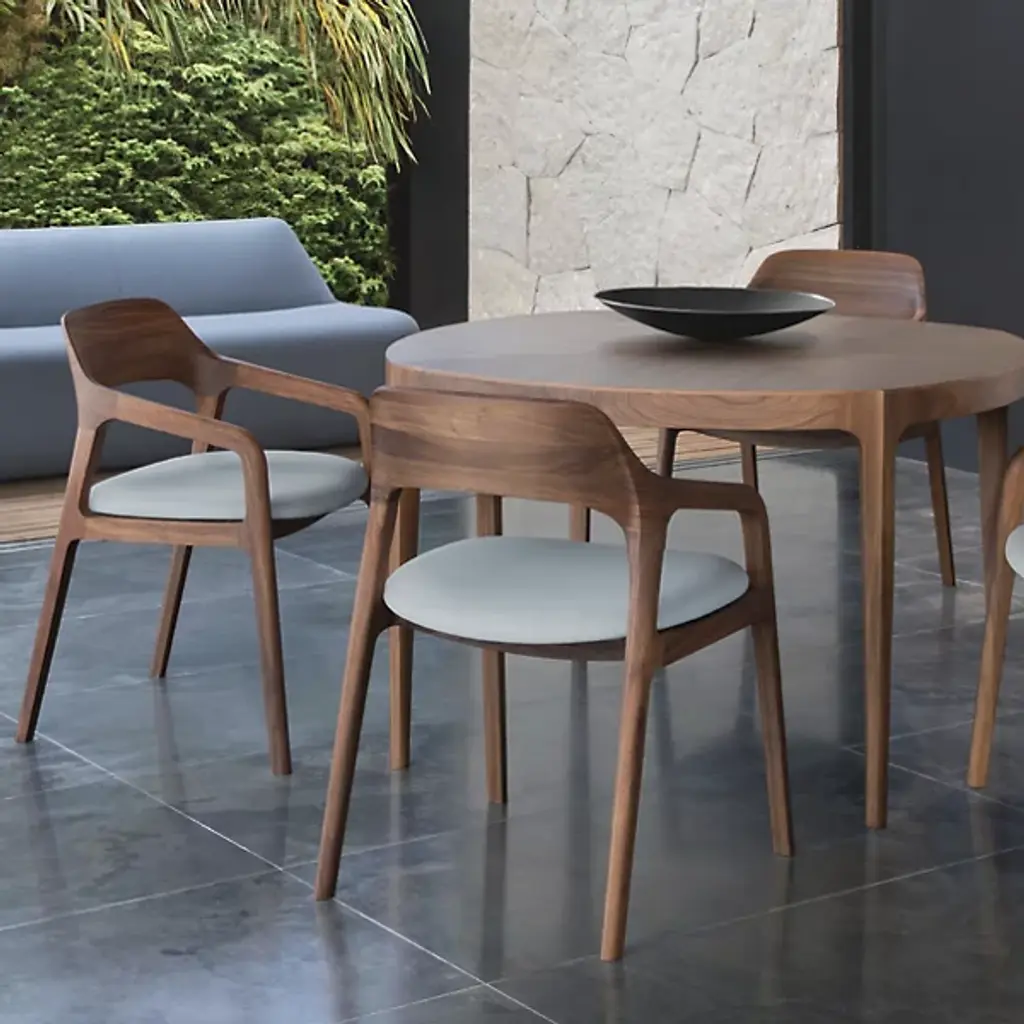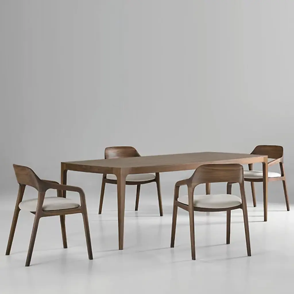The Charlotte Armchair from Bernhardt Design employs geometric precision as its primary design language, where angular framework meets carefully calculated curves. This approach results in a chair that reads as architectural furniture, with each line serving both structural and visual purposes. The solid American walnut construction showcases clean joinery and thoughtful proportions that speak to Noé Duchaufour-Lawrance's modern woodworking techniques. A single upholstered cushion interrupts the wooden geometry, offering a soft counterpoint to the chair's otherwise linear composition while maintaining the piece's overall restraint.