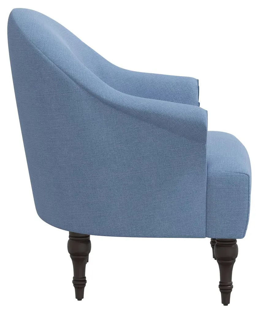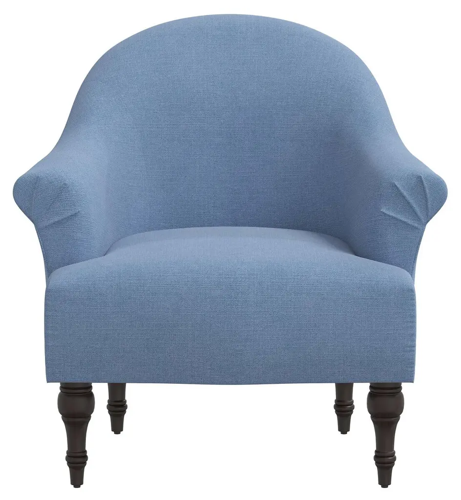 English roll arms and turned legs give this chair classic elegance; generous cushion fill ensures long-lasting comfort. Made in the USA, it's a welcome addition beside a fireplace, behind a desk, opposite a sofa, or just about anywhere else.