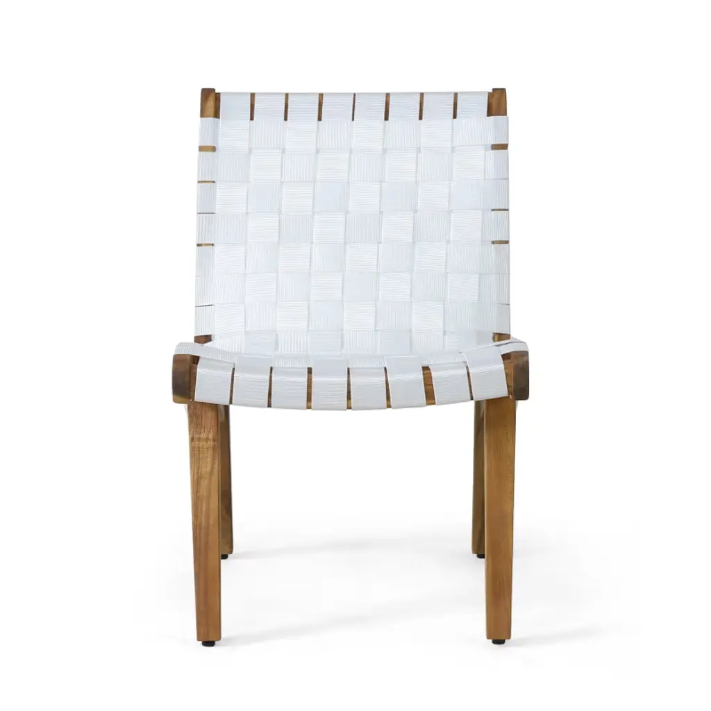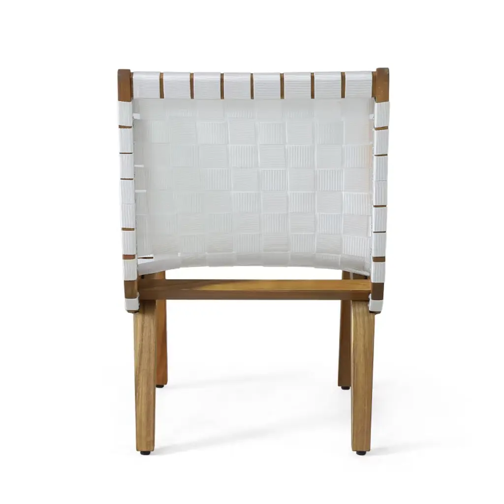 The transitional style of this lounge chair set is sure to give your outdoor space a minimalistic yet modern look that will match seamlessly with any arrangement you currently have. With a simple yet outstanding rope weave, this set will give your backyard an instant upgrade in style and comfort. These chairs feature an intricate rope strap weave that provides an incredibly durable and unique appearance. The woven details of this material allow this piece to blend seamlessly with your outdoor decor. Made with acacia wood that brings a sleek and exotic look to your space, this durable hardwood naturally withstands outdoor elements and will not darken over time. Acacia wood is perfect as a solid, heavy frame that resists wear and tear. Includes: Two (2) Lounge Chairs; Seat Material: Rope; Accent Material: Iron; Base Material: Acacia Wood Dimensions: 28.00 in. D x 20.25 in. W x 29.75 in. H Seat dimensions: 19.00 in. D x 20.25 in. W x 16.75 in. H