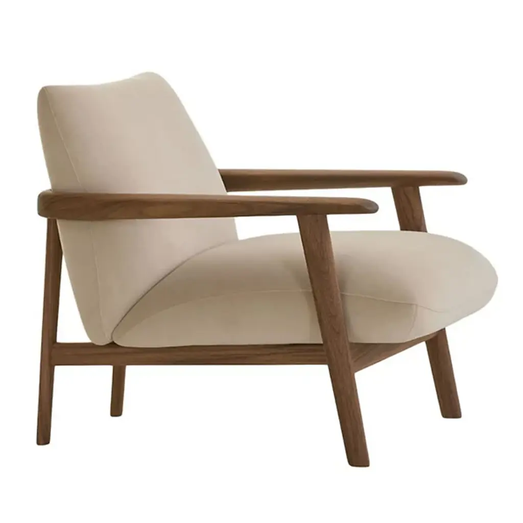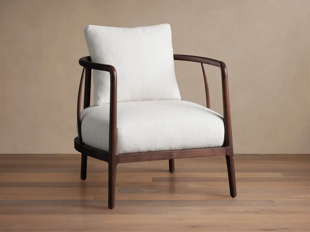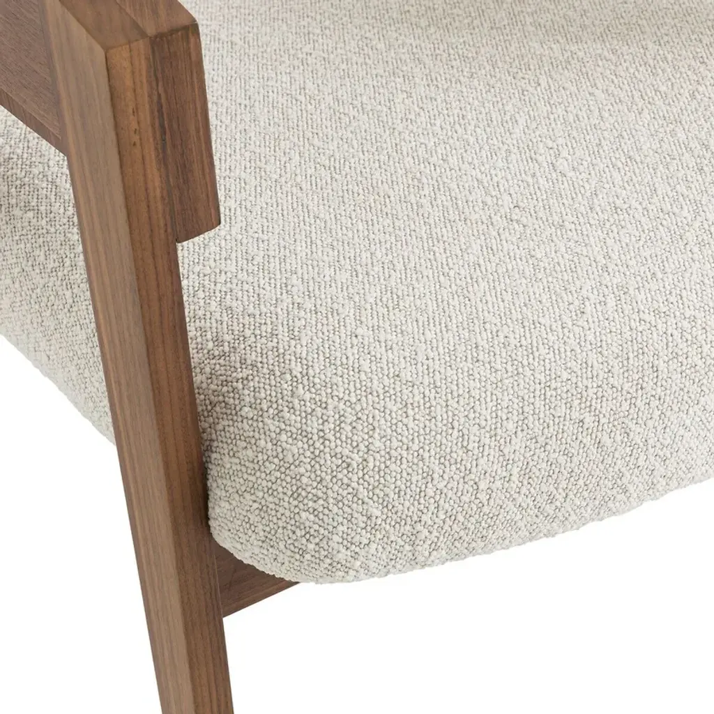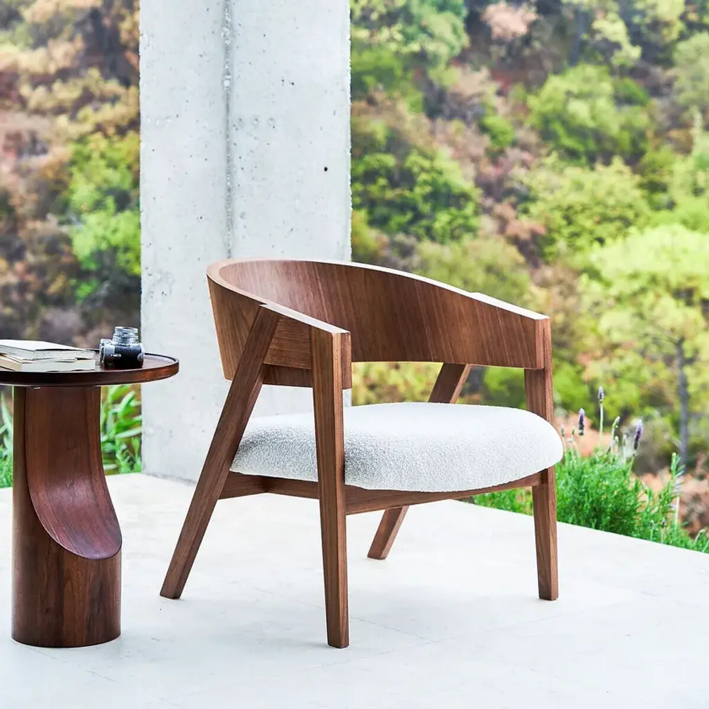 With its modernist elegance which is a sign of the times, its inverted V shape and its curved line, the Charly armchair offers a welcoming and comfortable seat. AMPM signature.Seat comfort: FirmBackrest comfort: FirmSitting: StillCovering in 100% polyester sponge fabric, ecru colourStructure in solid walnut with nitrocellulose finishBackrest in walnut veneered plywood with nitrocellulose finishSeat: plywood covered with 30 kg/m3 polyurethane foam