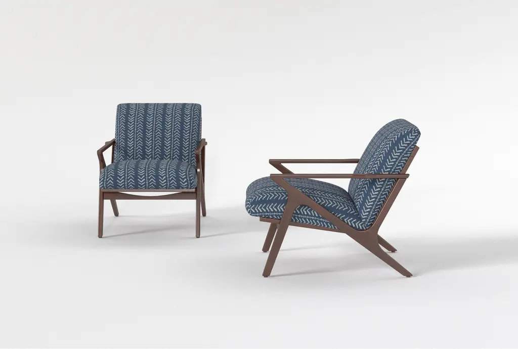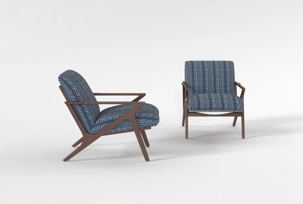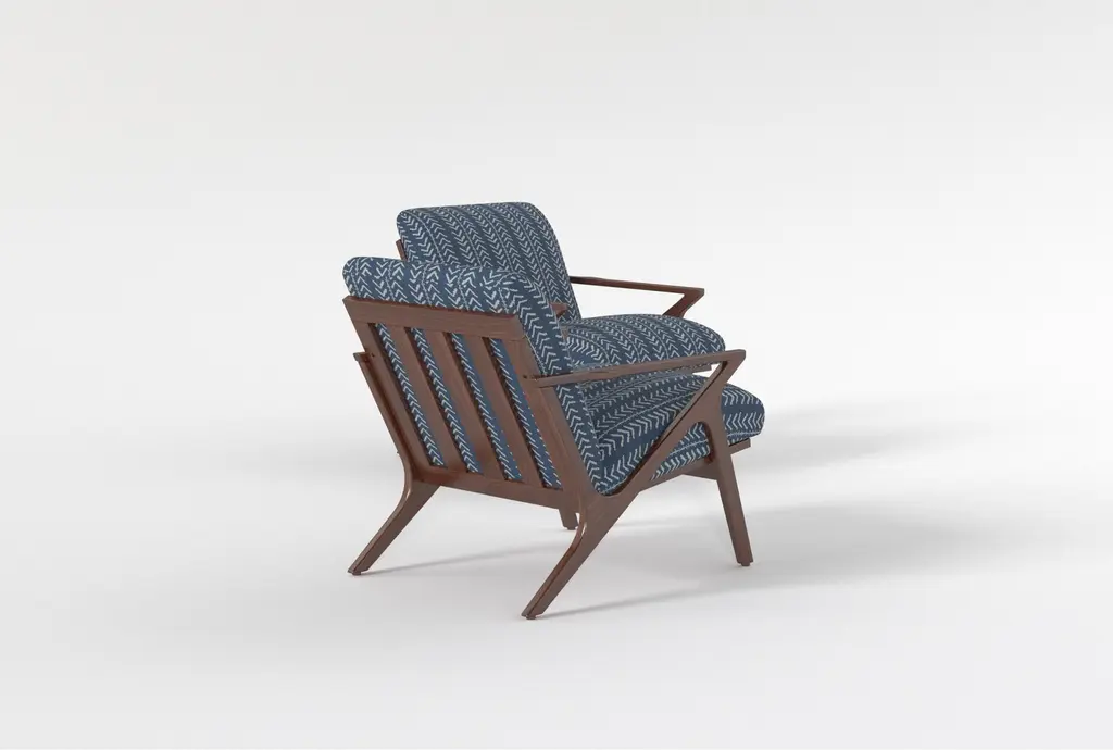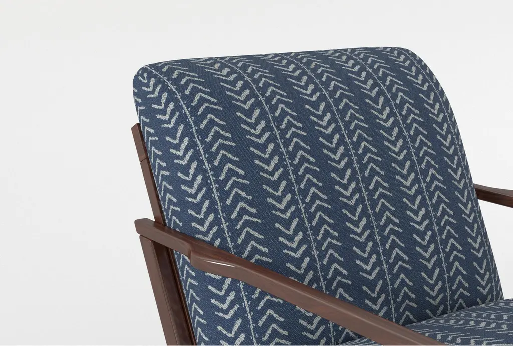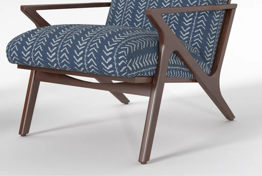 Adding seating, style and swagger to your space is a cinch with our Chill Frisco Indigo accent chair. Rich with mid-century modern character, the design features exposed wood arms and legs that showcase all the right angles in all the right places. As fun to look at as it is to sit in, this will be the highlight of your space with its boho-style tribal print. You can even customize the fabric at no extra cost through our Special Order program.