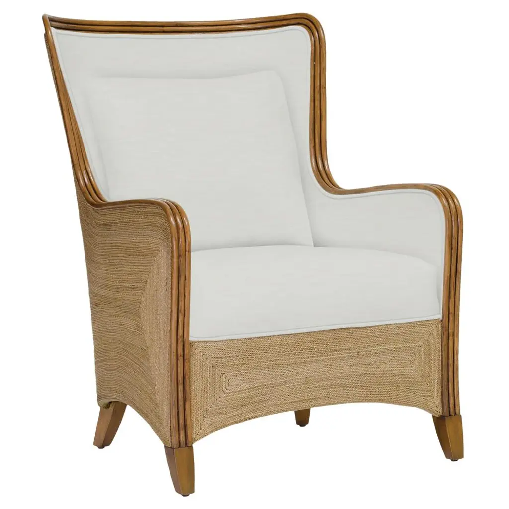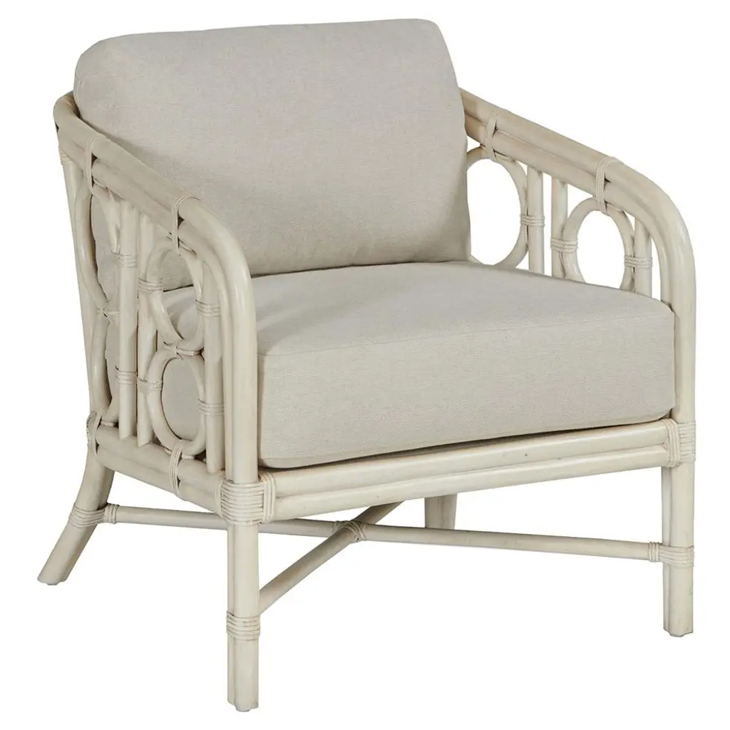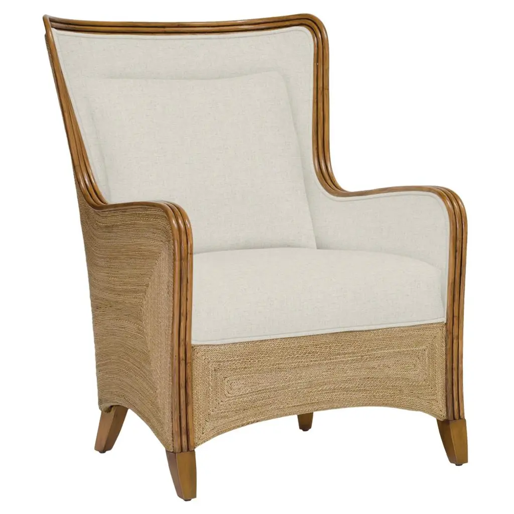 Hand-finished in a gorgeous camel hue, this chair is crafted of rattan with a Chippendale-style design and an upholstered webbed deck. Rawhide-wrapped joints add strength and textural contrast, while amply padded cushions upholstered in linen-blend fabric ensure a comfy seat.