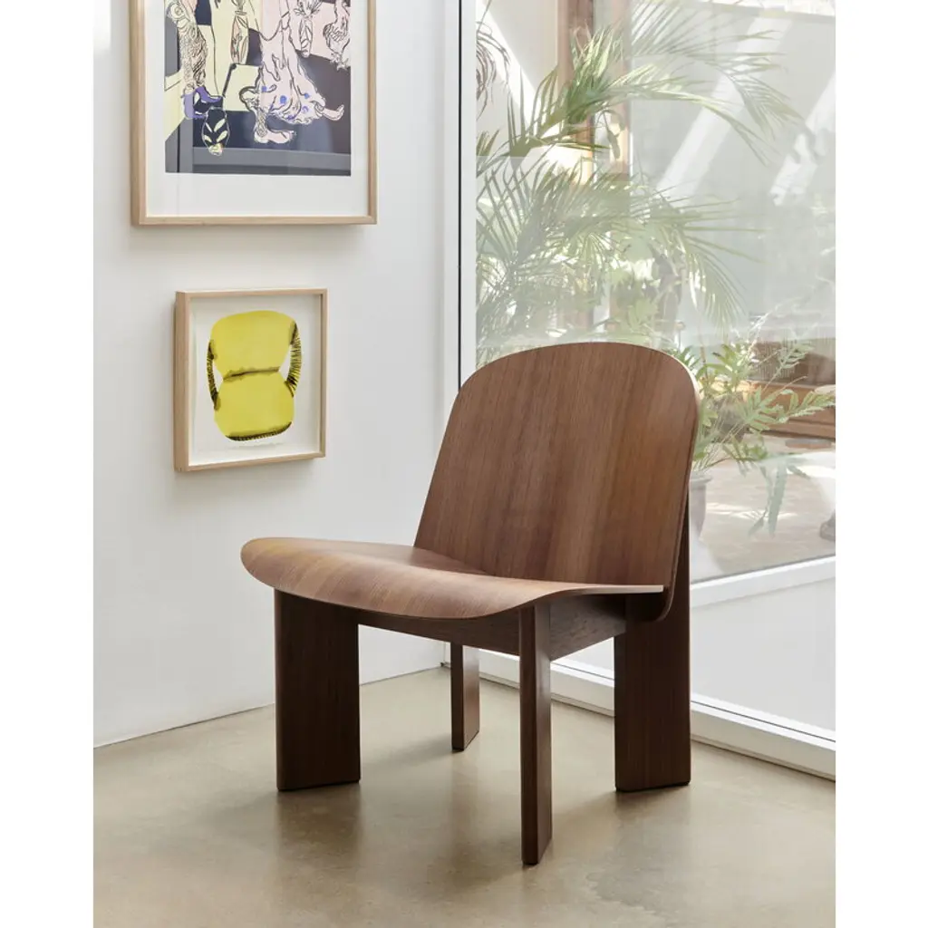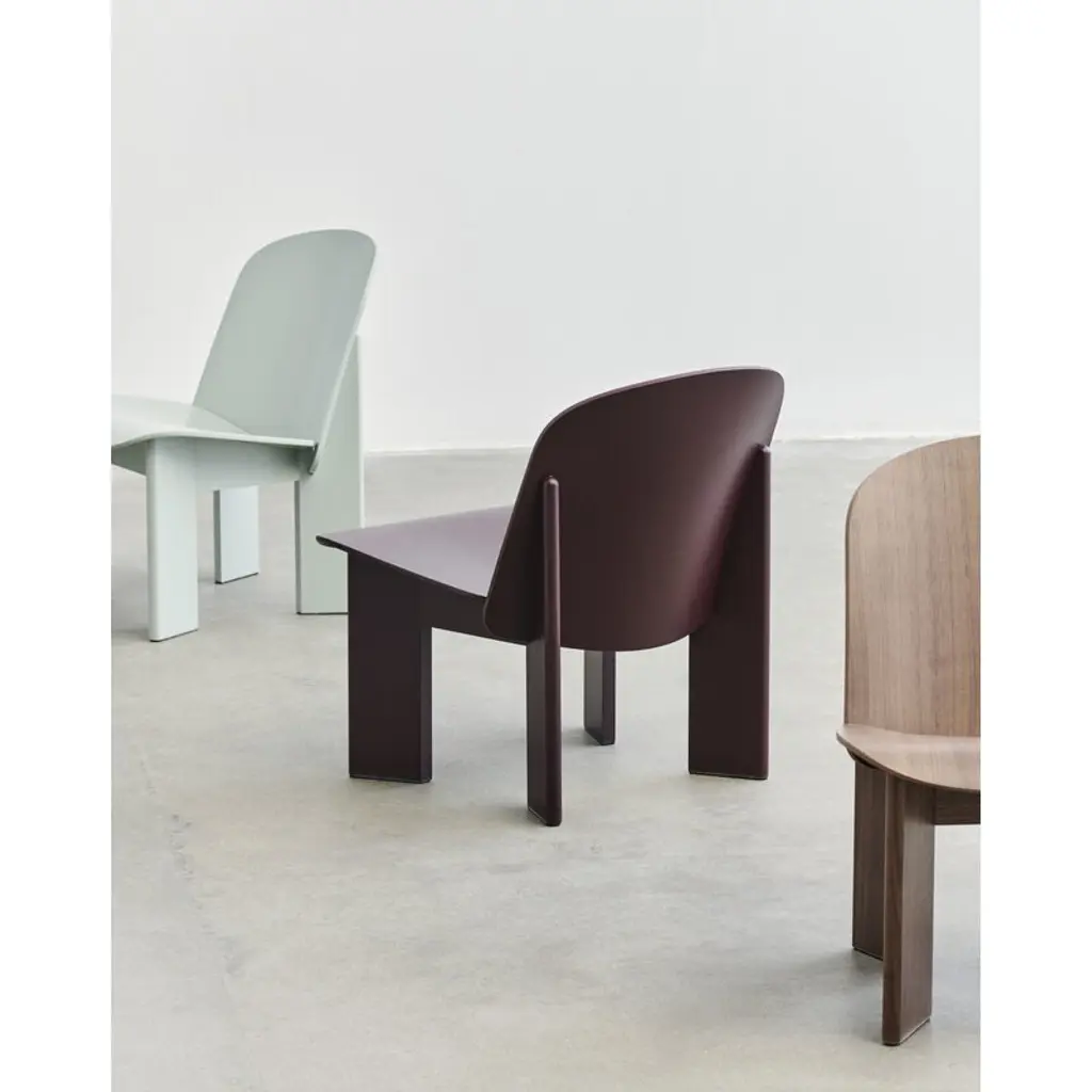 The HAY Chisel lounge chair represents a captivating fusion of contemporary allure and timeless elegance in the world of molded plywood chairs. Designed by Norwegian designer Andreas Bergsaker, the chair draws its name and inspiration from the venerable carpenter's tool, the chisel, embodying the essence of durability and style that defies the passage of time. Conceived with unwavering dedication to artisanship and ergonomic excellence, the Chisel lounge chair boasts a sensuously curved, organic seat and backrest, offering not just comfort but an irresistible visual embrace. Its charm is further enhanced by the gracefully angled legs, reminiscent of the chisel's own beveled edges, adding a touch of unique character. The wooden lounge chair's compact size makes it an ideal companion for a myriad of settings, from cozy living rooms and intimate bedrooms to the welcoming ambience of waiting rooms, the grandeur of lobbies, and the scholarly silence of libraries.