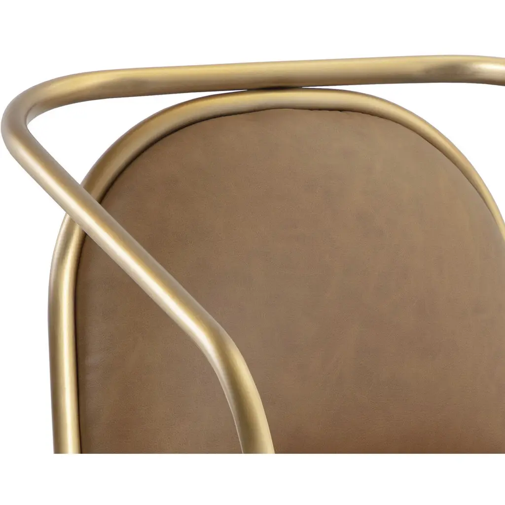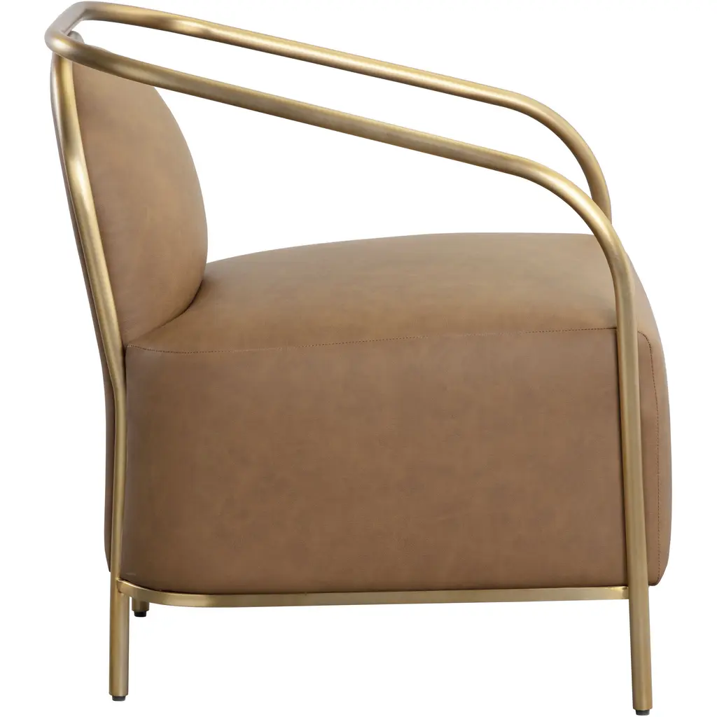 The Cicero Lounge Chair is a lesson in understated elegance. Sleek powder-coated gold stainless steel paired with the warm brown tones of milliken cognac faux leather creates a captivating look to elevate any living space. Handle With Care: This design has been crafted with faux leather. Faux leather is manufactured to reflect the natural characteristics of leather as such, colour variations, markings, wrinkles, grooves, and light scratches are appreciated characteristics. No two pieces will be alike. Visit our Product Care page for more information on how to ensure the lasting beauty of this piece.