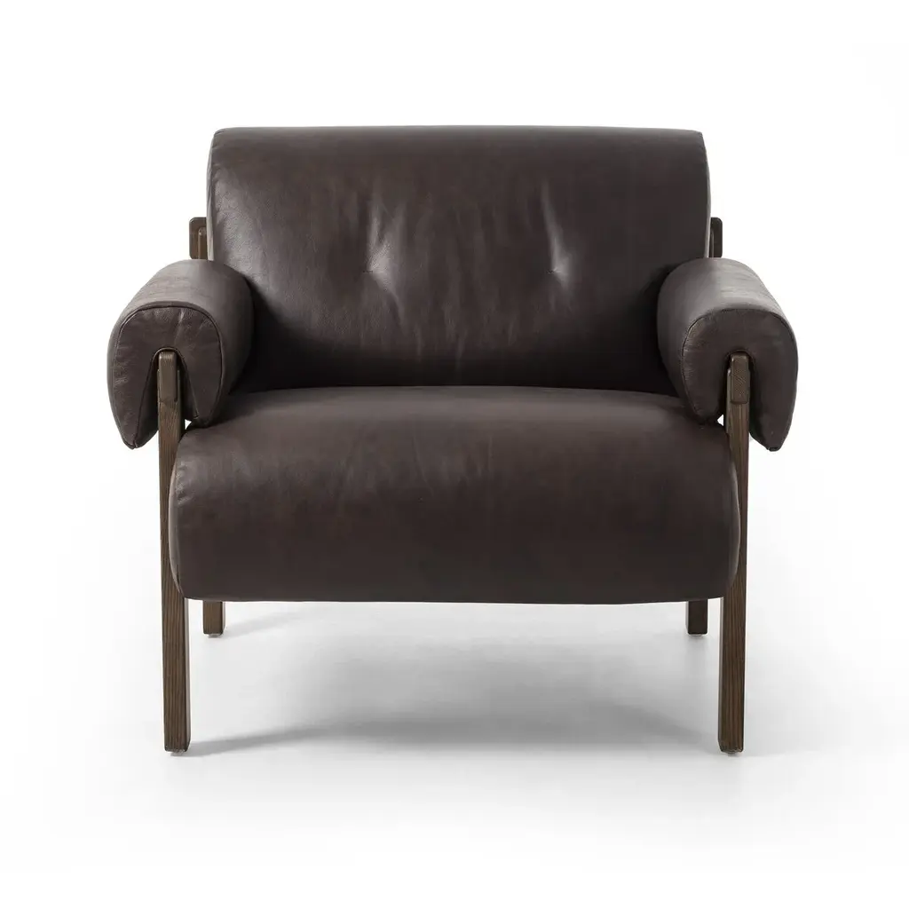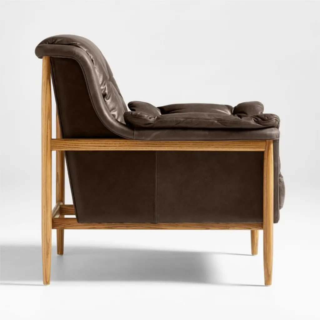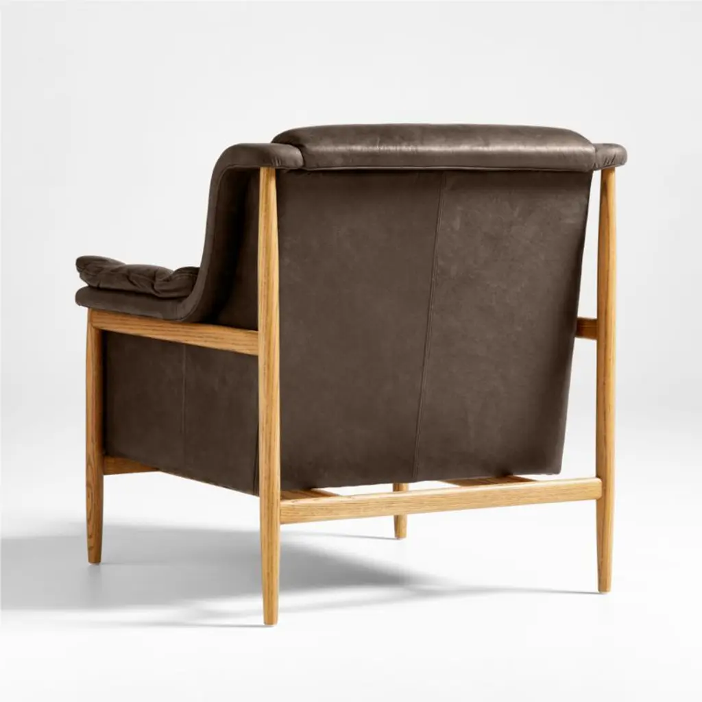 A Danish way with wood and a Brazilian take on modernism blend beautifully in our Cigar chair. Tapered round rods of natural oak shape the simple frame, warmed by a rich honey stain. Nestled within the angular support resides a luxurious seat upholstered in burnished dark brown leather. Padded cushioning wraps the arms, attached at points with buttons for a touch of vintage charm. The back cushion billows with deep button tufts for the look and indulgent comfort of a classic club chair.By choosing FSC®-certified furniture, you are supporting responsible management of the world's forests.