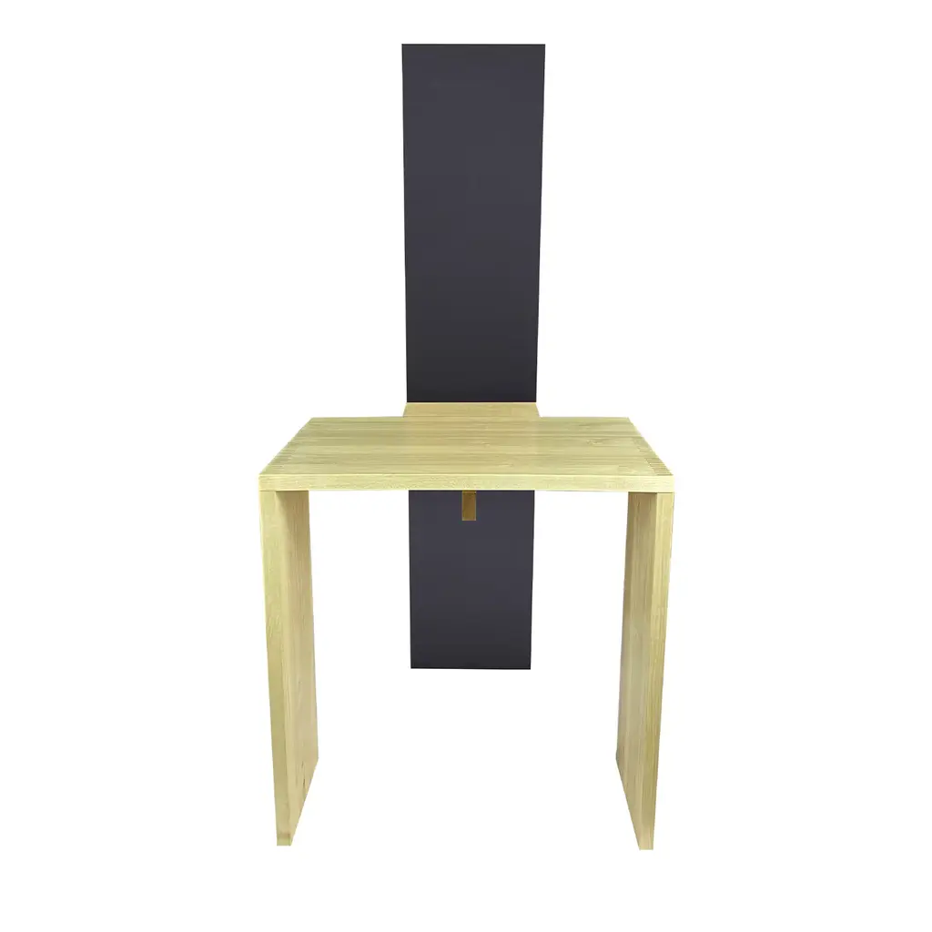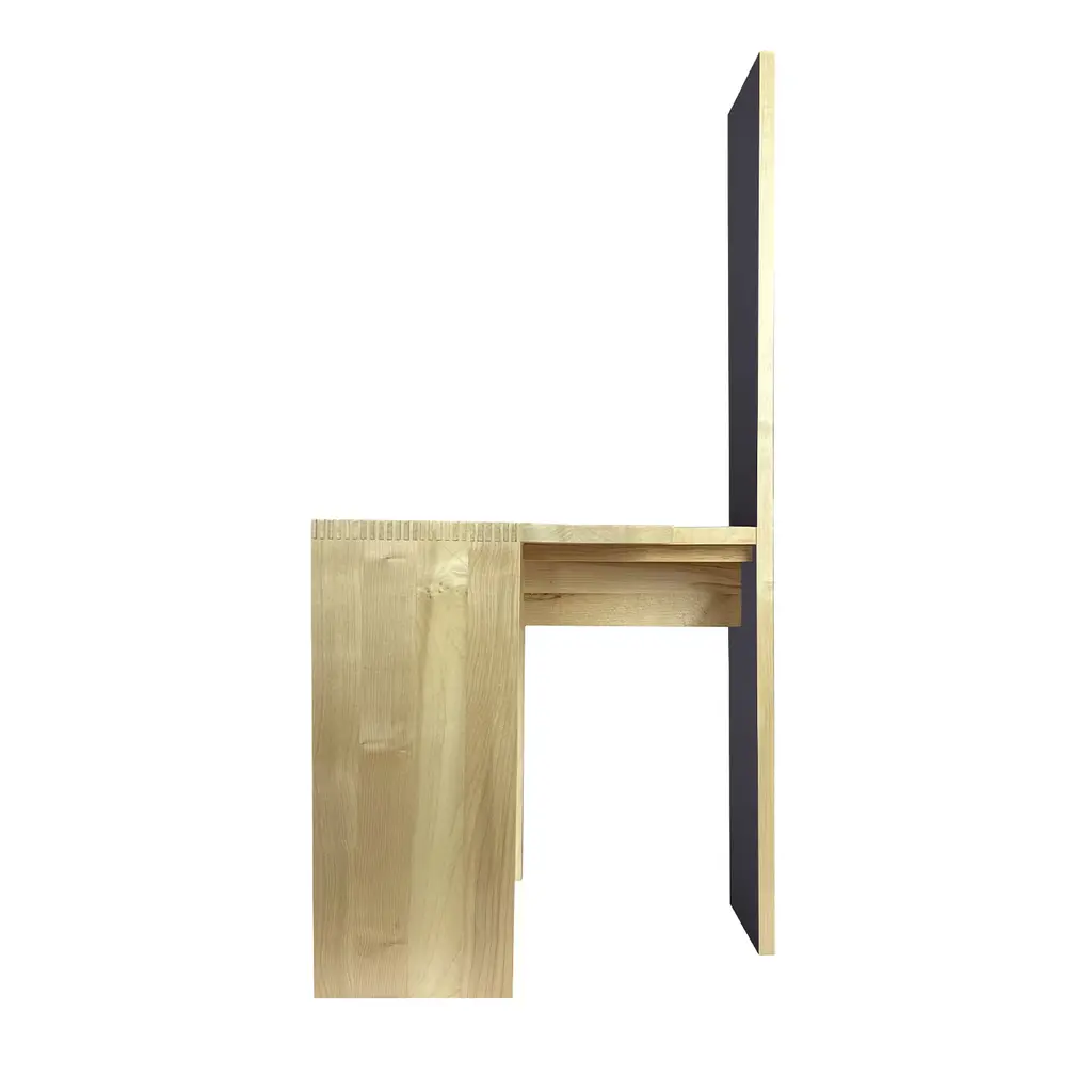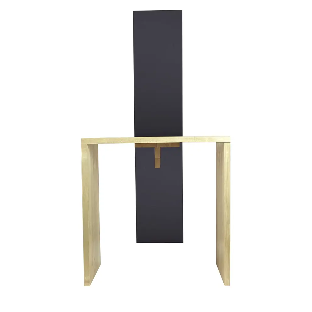 An ode to minimalism and geometric rigor, this chair was designed in 1994 by Ferdinando Meccani. Simple maple boards compose its essential structure, the anthracite lacquer accenting the backrest adding chromatic depth to the entire silhouette. Ideally showcased in twins in different color options for a colorful statement. Please consult the Artemest catalog for available variants.