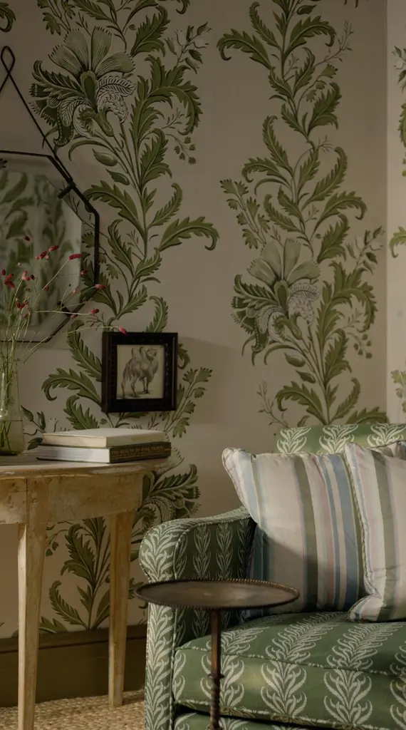 Cinny Reupholstered Armchair In Leafy Stripe Lorcan Reverse Banana Palm