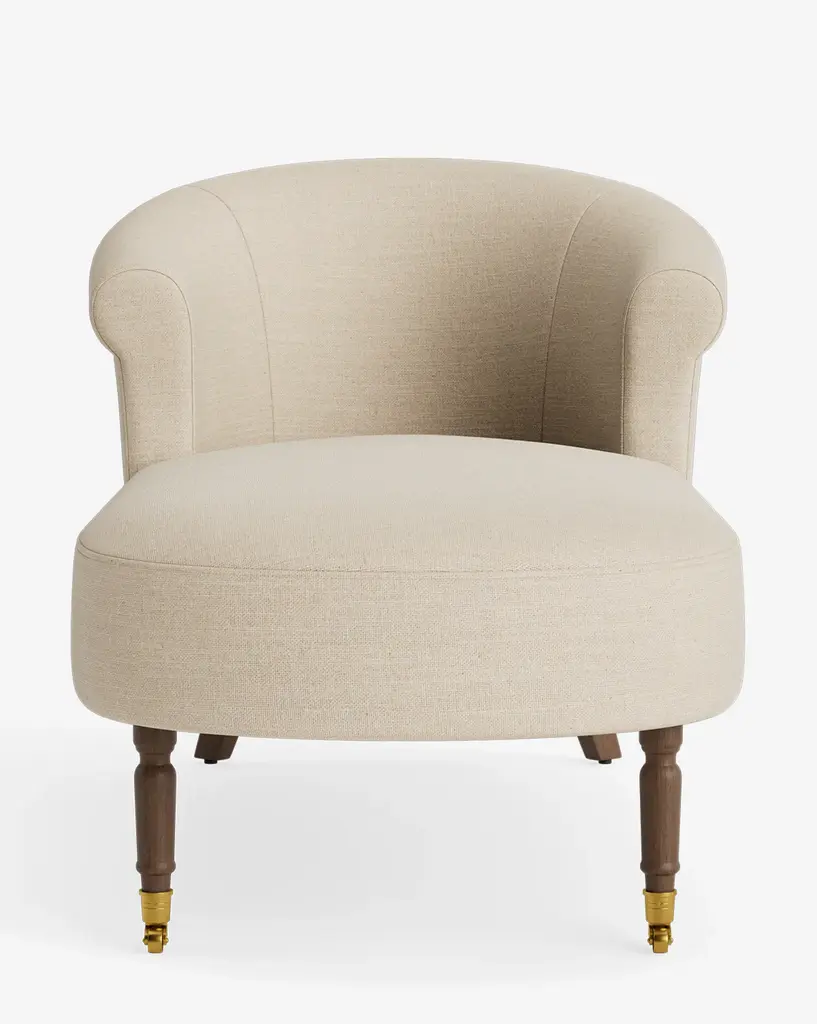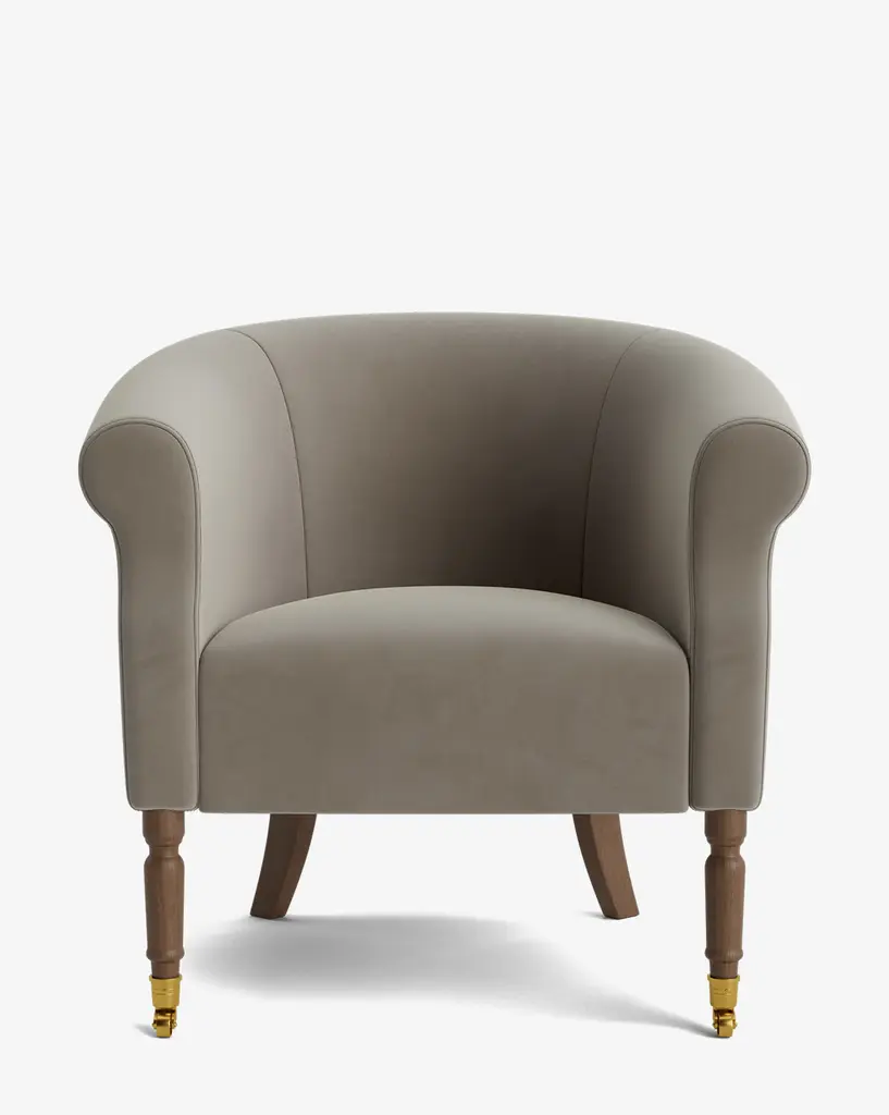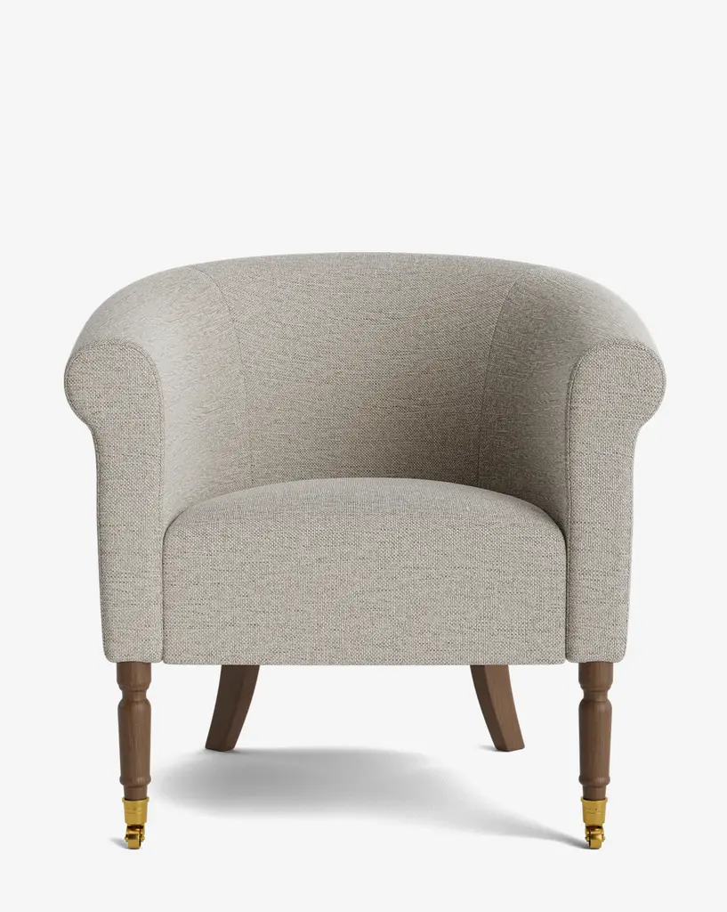 Crafted with timeless design in mind, the Clemence Lounge Chair brings together the best of both form and function in an upholstered lounge chair. From the turned legs to the traditional curved elements, this chair adds comfort and a classic feel to your living space in your choice of designer fabric upholstery.