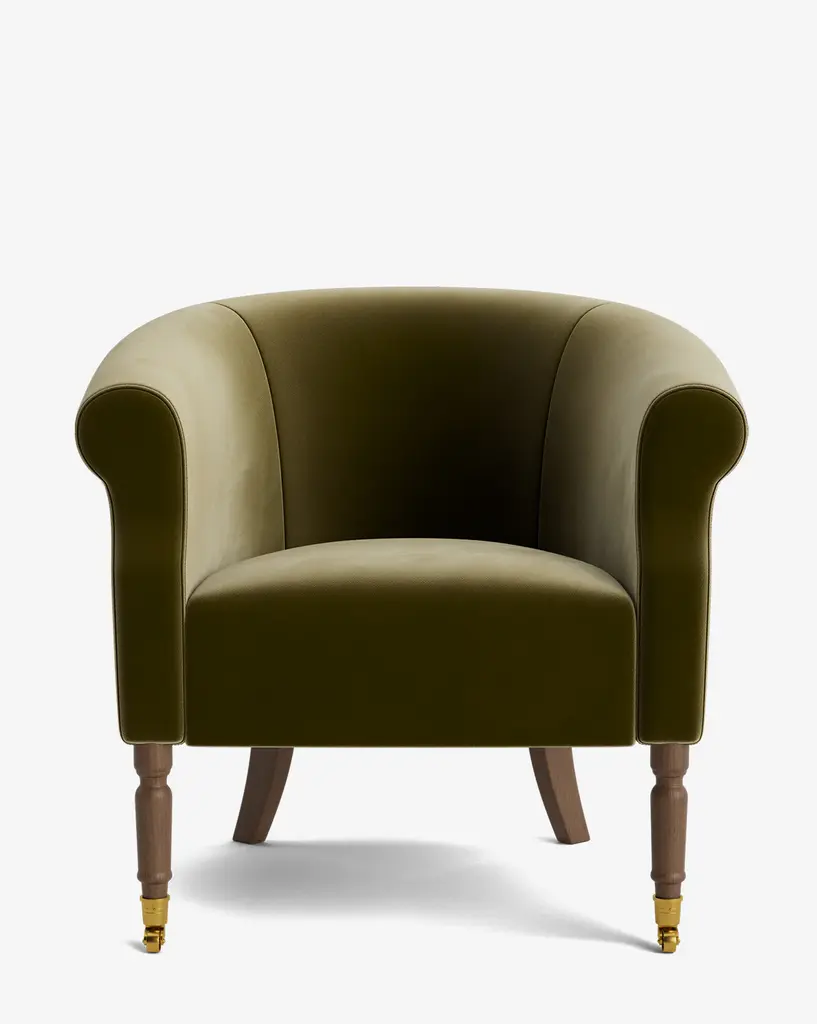 Crafted with timeless design in mind, the Clemence Lounge Chair brings together the best of both form and function in an upholstered lounge chair. From the turned legs to the traditional curved elements, this chair adds comfort and a classic feel to your living space in your choice of designer fabric upholstery.